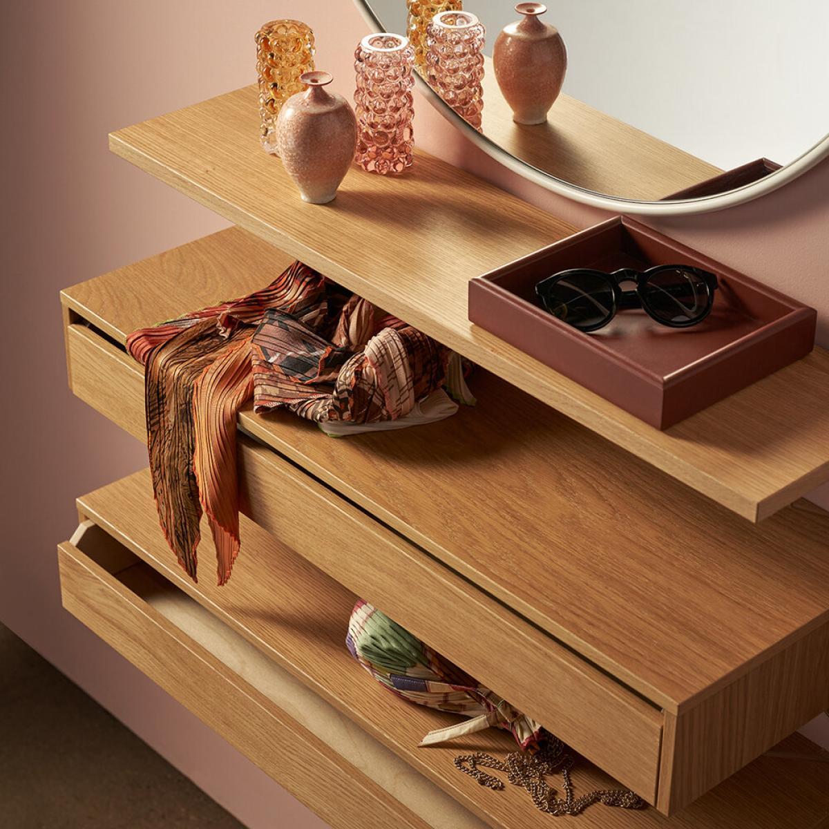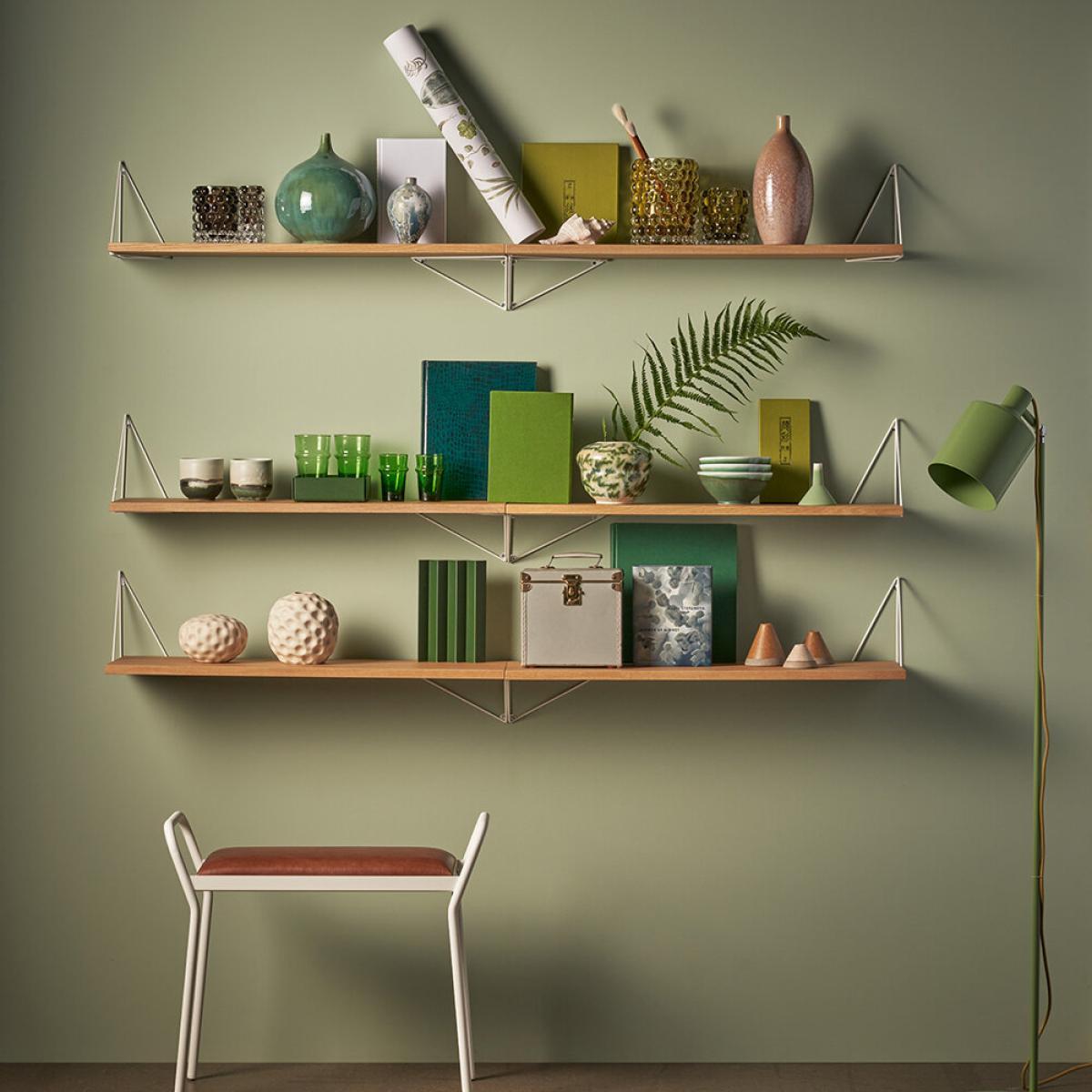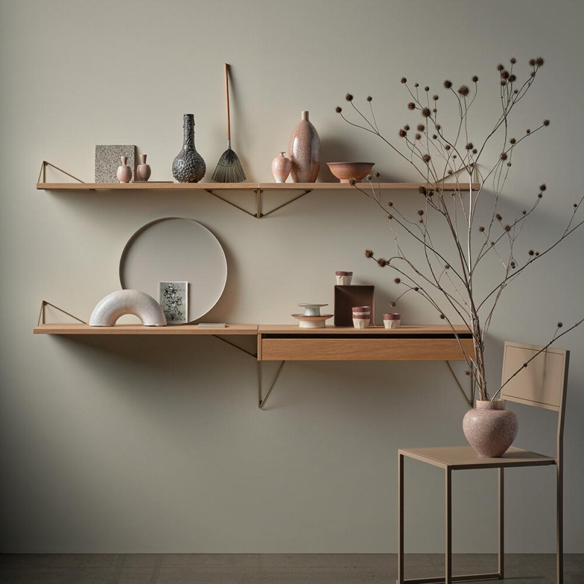 I love the Pythagoras Shelf for its sleek, minimalist design and its practicality. The natural oak finish offers warmth and texture, making it versatile for a variety of interiors, from Scandi-inspired schemes to more contemporary spaces. It works particularly well in small spaces or as a bedside ledge, where it can be styled with a mix of books, decorative objects, or plants for a personalised touch. For a polished look, try grouping smaller decor pieces to avoid clutter, and consider leaning taller objects for visual interest. Overall, it’s a great way to add functional storage while keeping things looking clean and understated.
