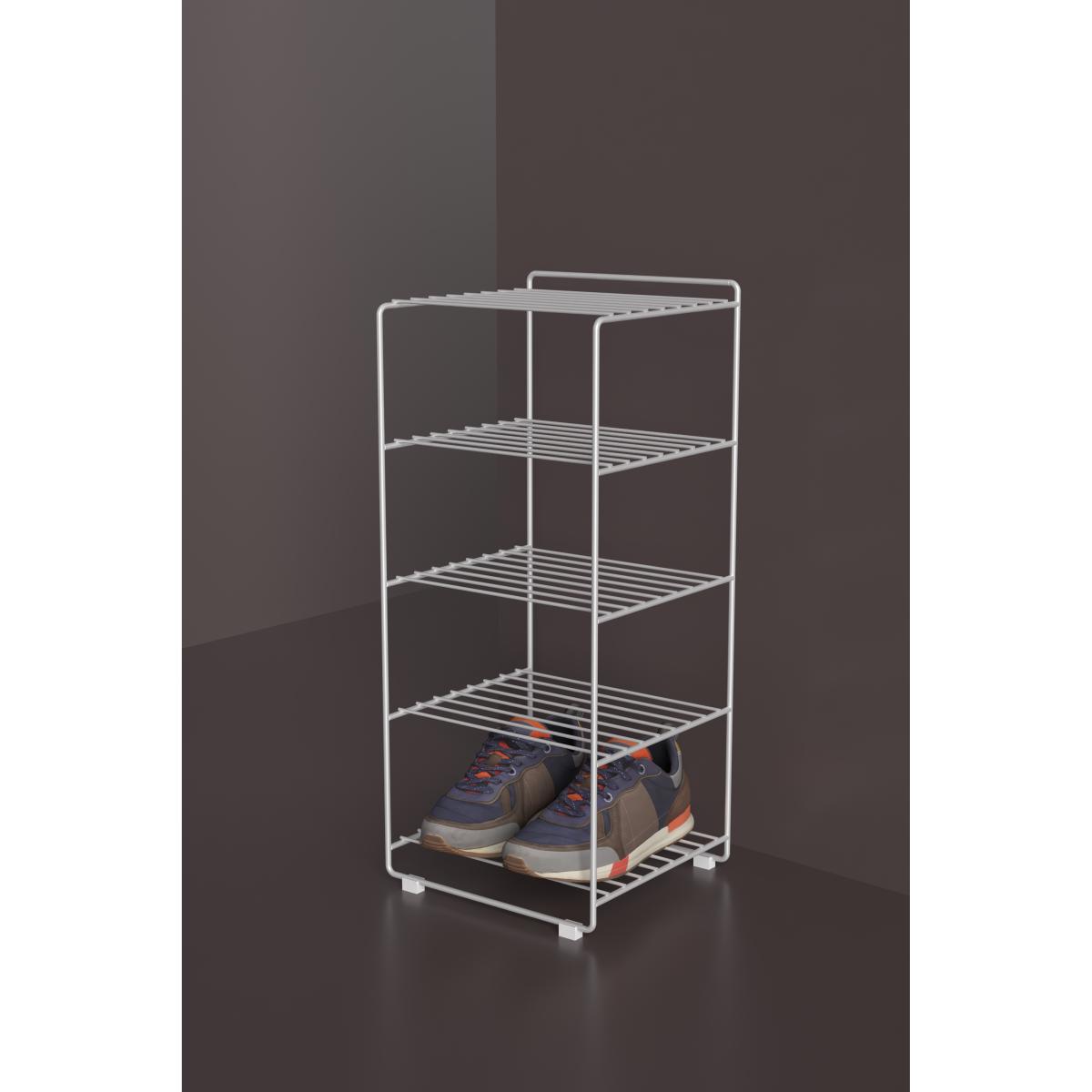 I really like this shoe shelf because of its sleek, minimalist design that works well in both modern and Scandinavian-inspired interiors. Its white finish ensures it blends seamlessly into a range of colour schemes, while the open wire design keeps the space feeling airy and uncluttered. It's a practical choice for organising shoes near the entrance or in the wardrobe, and I recommend pairing it with matching storage baskets for smaller accessories. For styling tips, place it beside a simple bench or mirror to create a functional yet tidy entrance area, and consider adding a small tray on top for keys or decorative items to personalise the space.