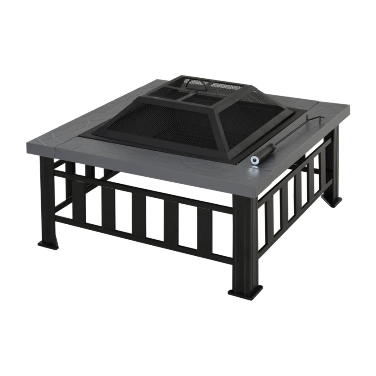 Maze Metal Large Firepit Outdoor Square Fire Pit Brazier - Grey