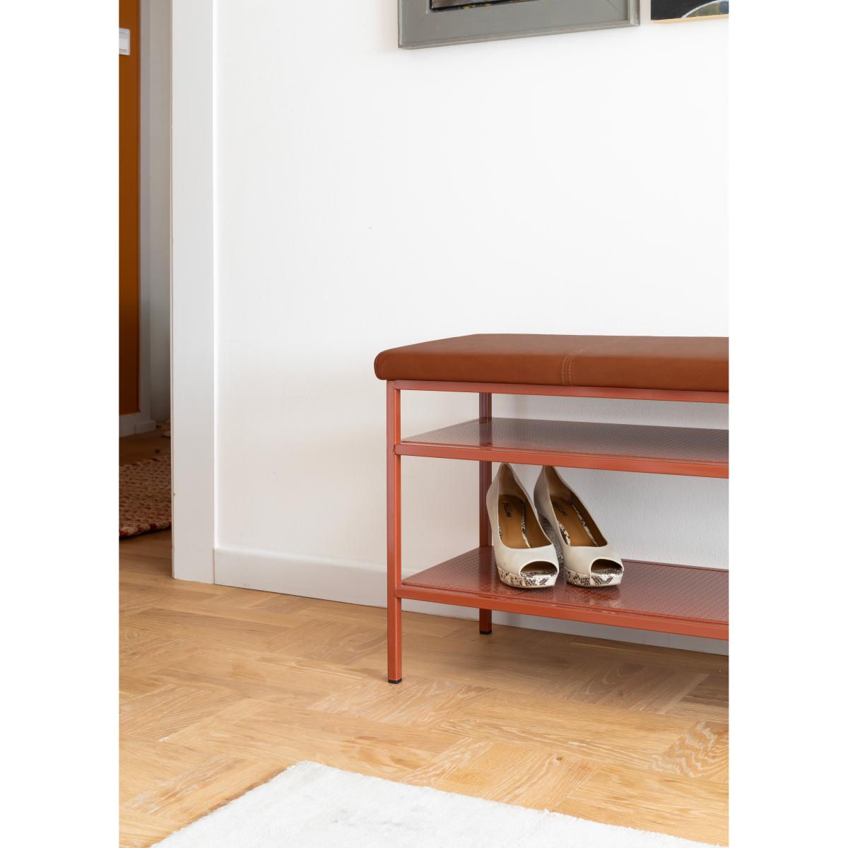 Nancy shoe rack is a Swedish-made combined shoe rack and bench designed by Louise Hederström for Maze. The furniture is made of perforated, lacquered steel with a leather seat from Elmo and has a slim and stylish design that feels both modern and timeless. Nancy can hold your favorite shoes and also offers a comfortable seat to sit down while putting on or taking off your shoes! Choose from different colors.