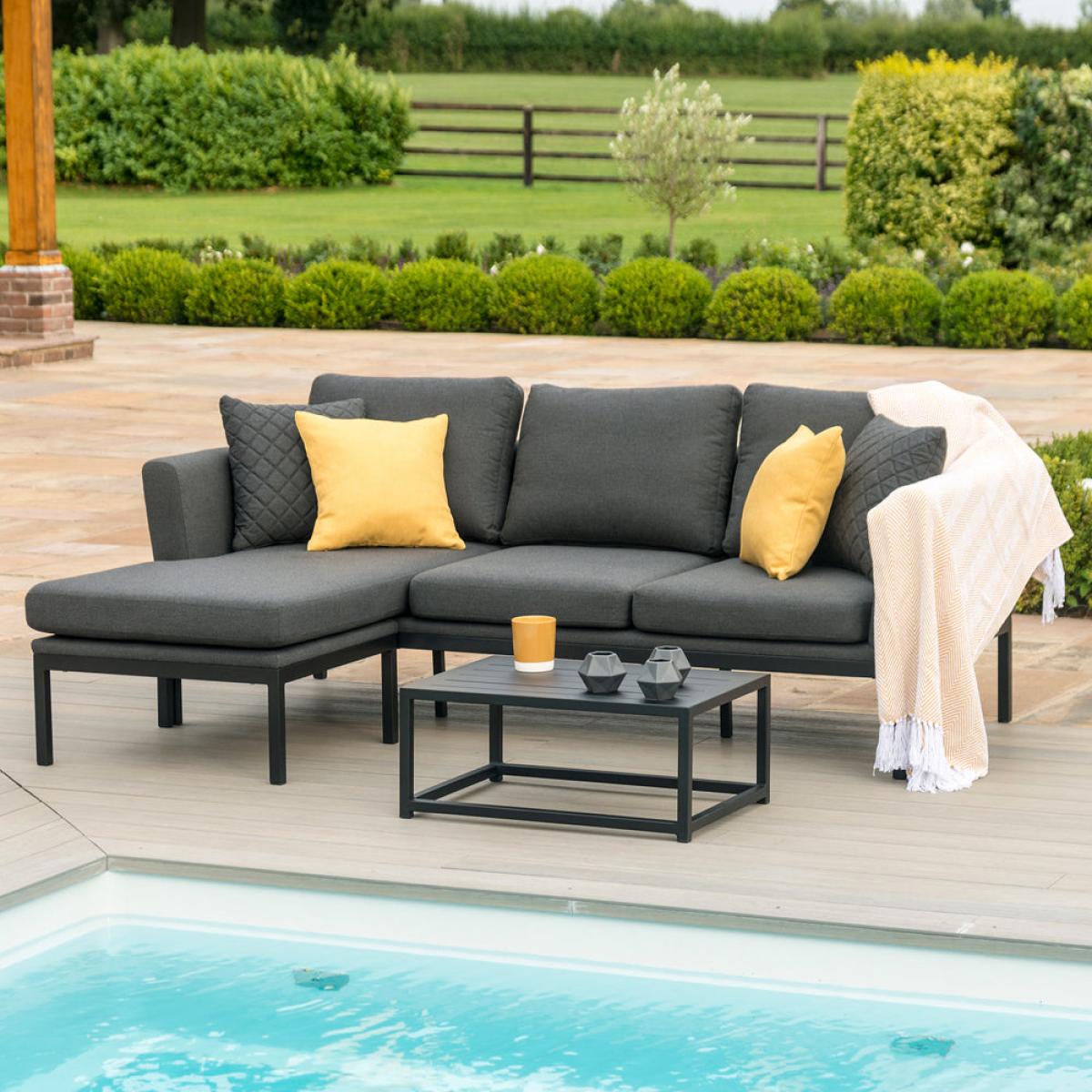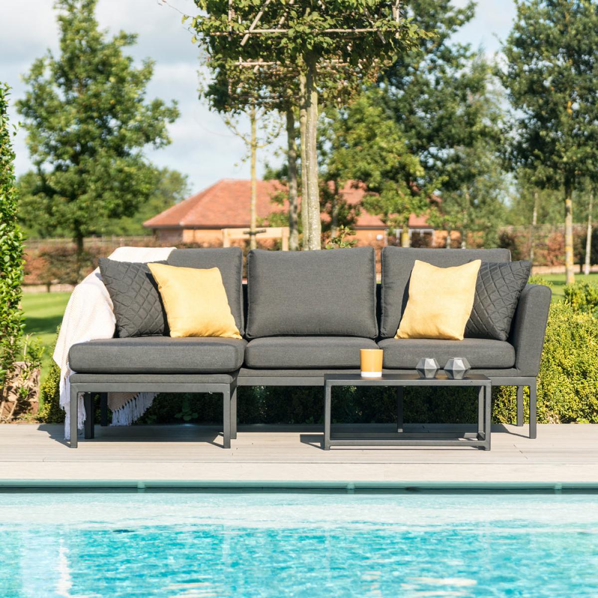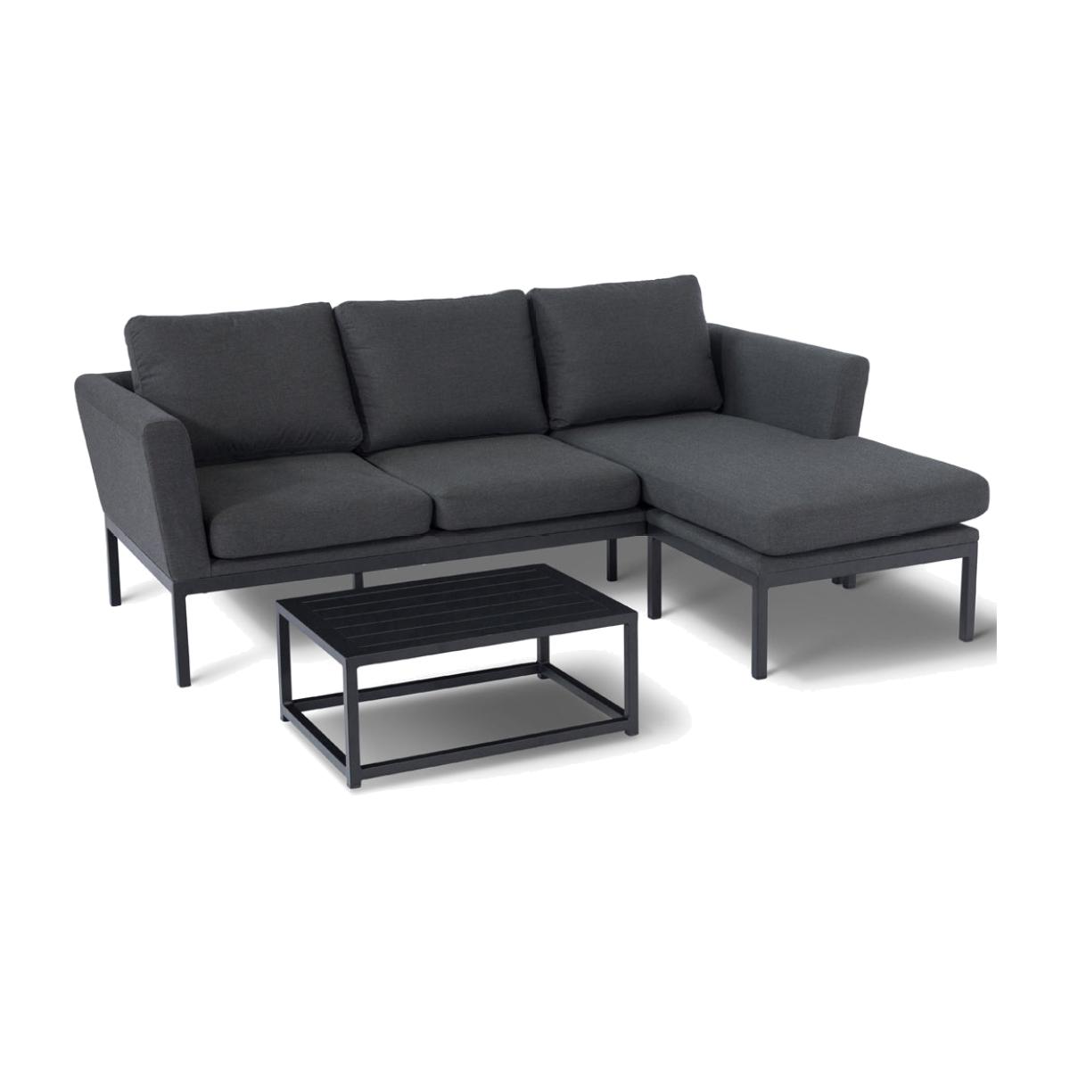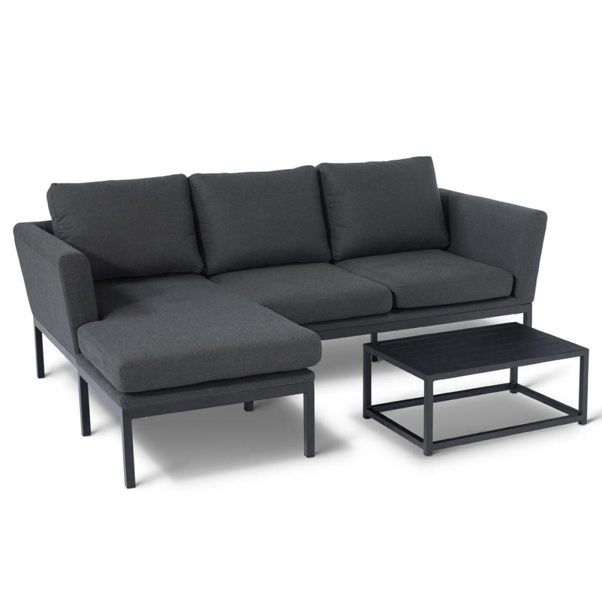The Pulse Chaise Sofa Set emulates intimacy, with practicality at the heart of the design. The footstool can sit on either side of the sofa, and due to the compact design, this sofa can easily be placed in any outdoor setting.