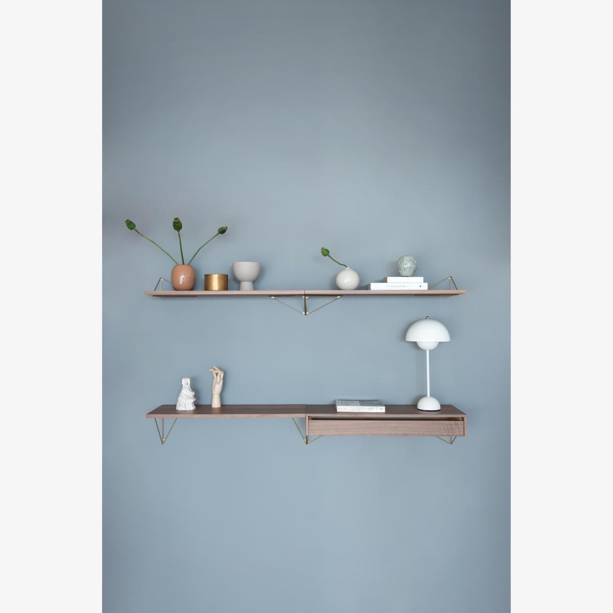The Maze Pythagoras bundle in walnut-brass is a versatile and modern shelving system that works particularly well in both contemporary and minimalist interiors. I love how the geometric arrangement and mixed materials elevate a simple wall, making it a focal point without overwhelming the space. It’s ideal for creating organised displays in living rooms, home offices, or bedrooms, allowing for a curated mix of books, decorative objects, and lighting. My top styling tip is to vary the heights and contents of each shelf to add visual interest-think pairing sleek ceramics or monochrome books with botanical accents or statement lighting. It's a practical solution that combines function with a clean, architecturally-inspired aesthetic.