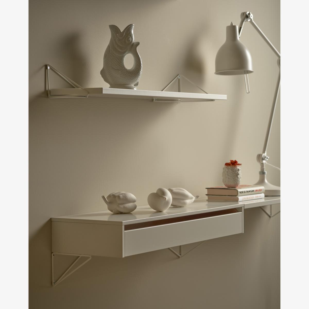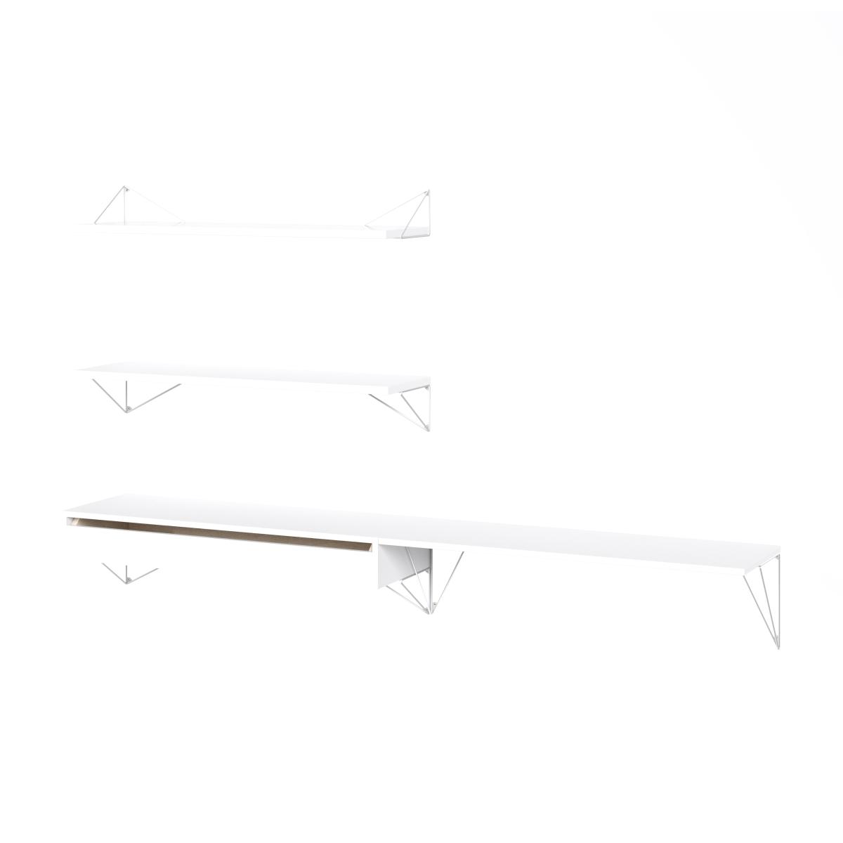 I love this maze Pythagoras system because of its sleek, minimalist design that works well in a variety of interiors-particularly modern, Scandinavian, or contemporary spaces. Its clean white finish makes it versatile and unobtrusive, helping it blend seamlessly into different colour palettes. Practical styling tips include using the upper shelf for decorative pieces or plants to create visual interest, while the drawer underneath offers hidden storage for clutter. For a polished look, keep accessories simple and curated, allowing the geometric lines to stand out. It’s especially effective in small spaces or as part of a sculptural wall arrangement to add organisational function without sacrificing style.