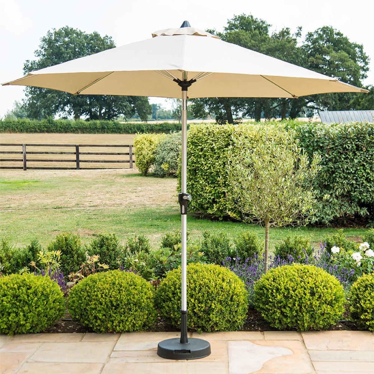 Providing you shade from the hot summer sun, the Maze Rattan 2. 7m Round Parasol is a must-have garden accessory! Easily open and close your parasol with the crank handle and with a tilt function you'll have shade no matter the time of day. Available in a choice of colours, pair with your garden furniture dining set or bring some shade to sun loungers.