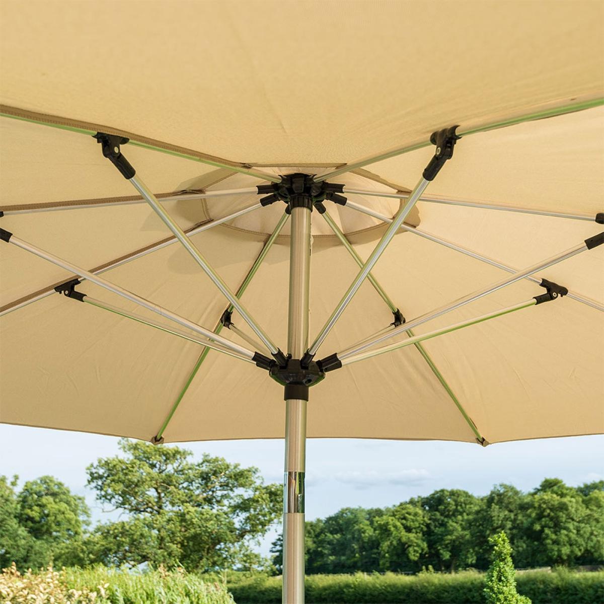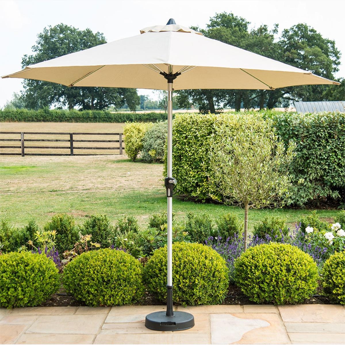 Providing you shade from the hot summer sun, the Maze Rattan 3m Round Garden Parasol is a must-have garden accessory! Easily open and close your parasol with the crank handle and with a tilt function you'll have shade no matter the time of day. Available in a choice of colours, pair with your garden furniture dining set or bring some shade to sun loungers.