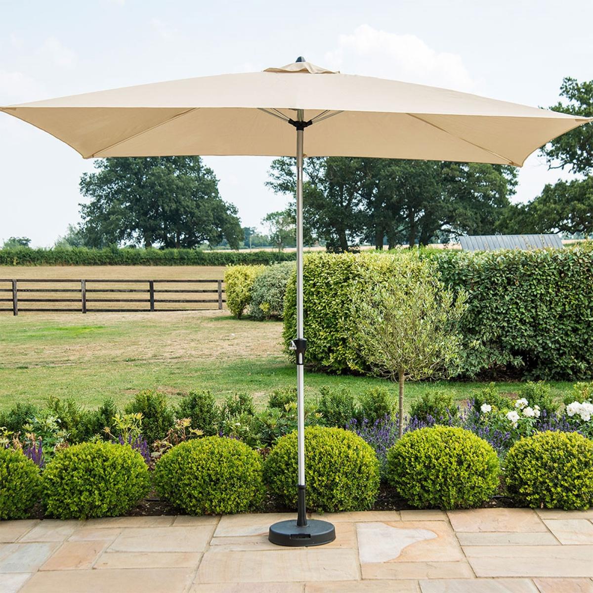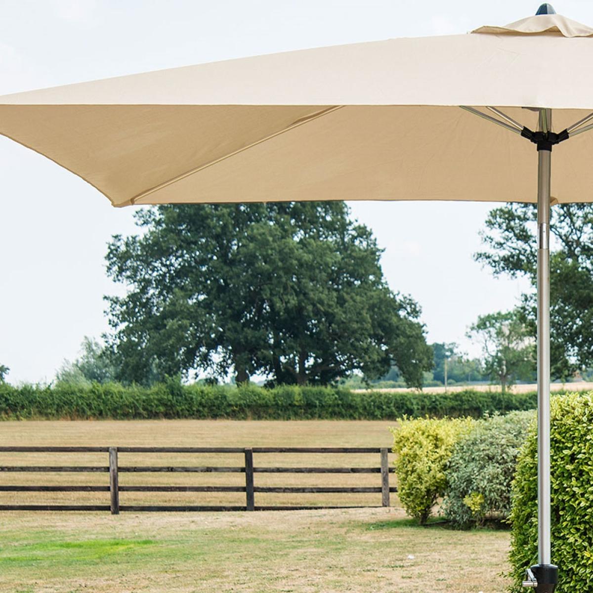 Offering shade and protection from the sun, the Maze Rattan 3m x 2m Rectangular Garden Parasol is a must-have outdoor accessory! Place over dining sets, sun loungers and garden furniture to take shelter from extreme heat and UV rays. Available in a choice of colours, easily open and close with the integrated crank handle, tilt to your desired angle and control the amount of sun you're getting!.