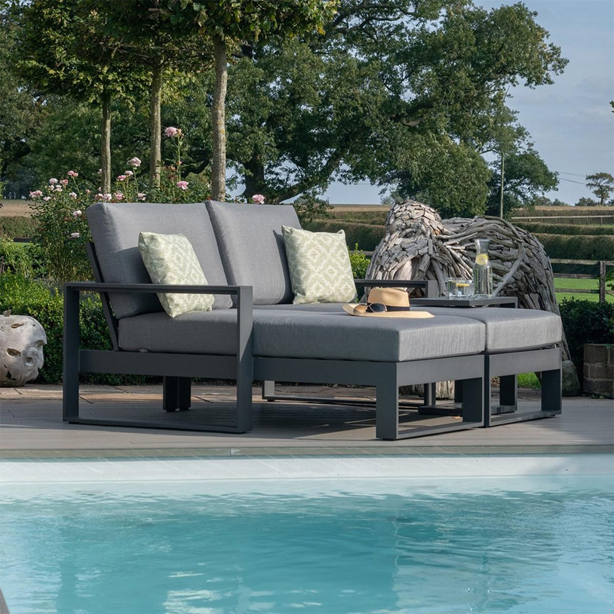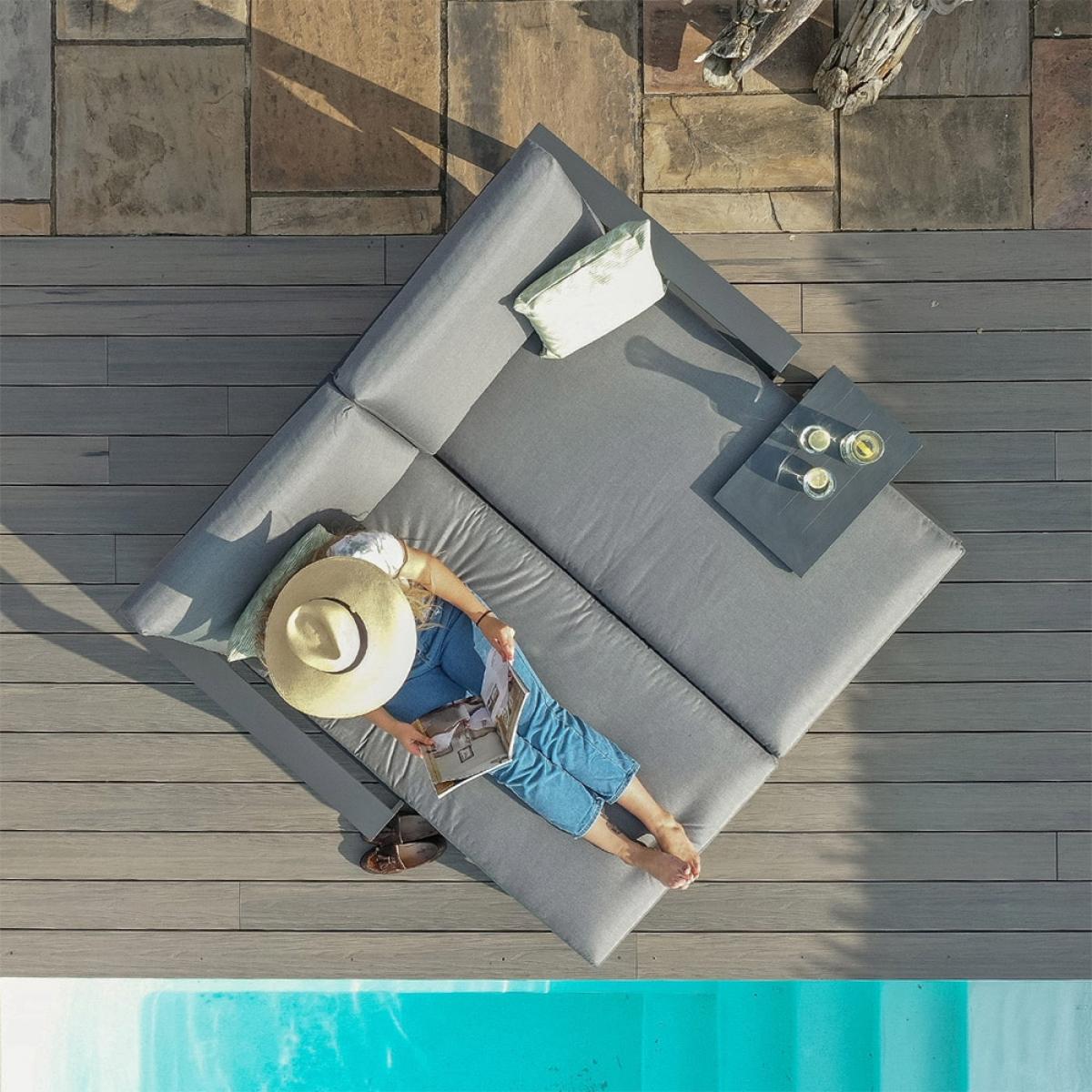 Extend your outdoor living space with this classic Amalfi Double Sun Lounger with Side Table from Maze Rattan. Make your garden summer-ready with these contemporary plush cushioned sun loungers. Perfect for relaxing the day away during those balmy summer days, if you're lucky enough to have a pool why not take a dip when you get a little too warm! Fill up the handy side table with naughty nibbles and maybe a cheeky cocktail to have that full on holiday feel! Whether used solo or combined as a day bed, either way, this classic lounger will be your go to spot all summer!.