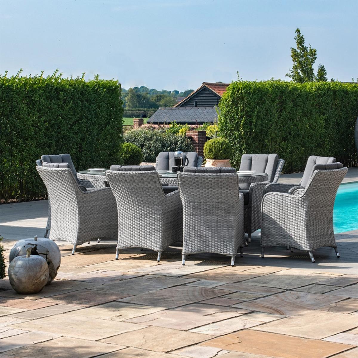The Maze Rattan Ascot Oval Dining Set with Lazy Susan will add an element of understated luxury to your outdoor living space. Sit around the glass top dining table and enjoy a few cheeky nibbles with a bottle of bubbles with your loved ones and chat away into the evening. The lazy Susan will provide you and your guests an effortless experience when trying to pass the condiments around the table. No more "pass the salt please" shouts from the opposite end of the dining table! In a choice of two sizes; a 6 seater or an 8 seater, you have the freedom of choosing the best fit for your needs.
