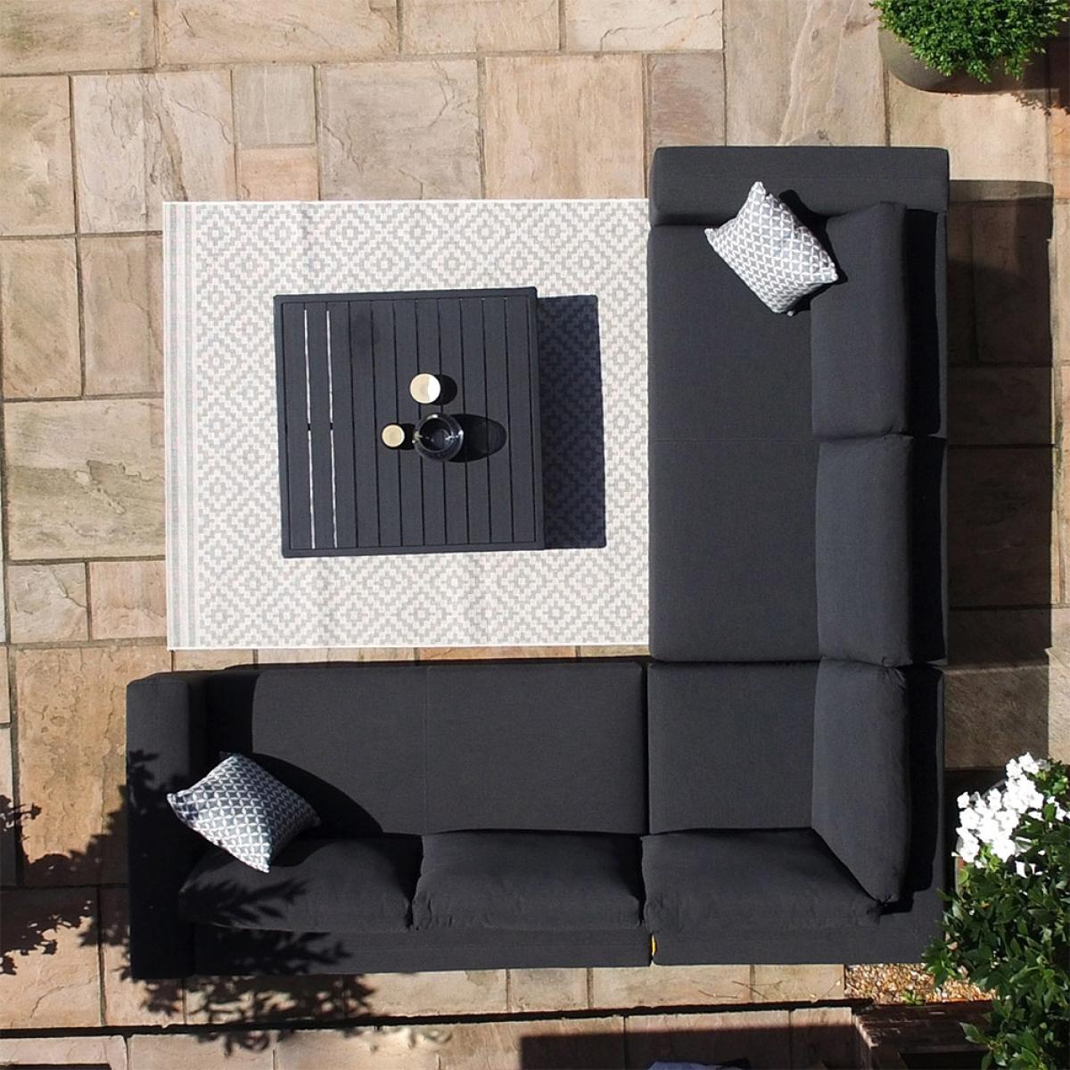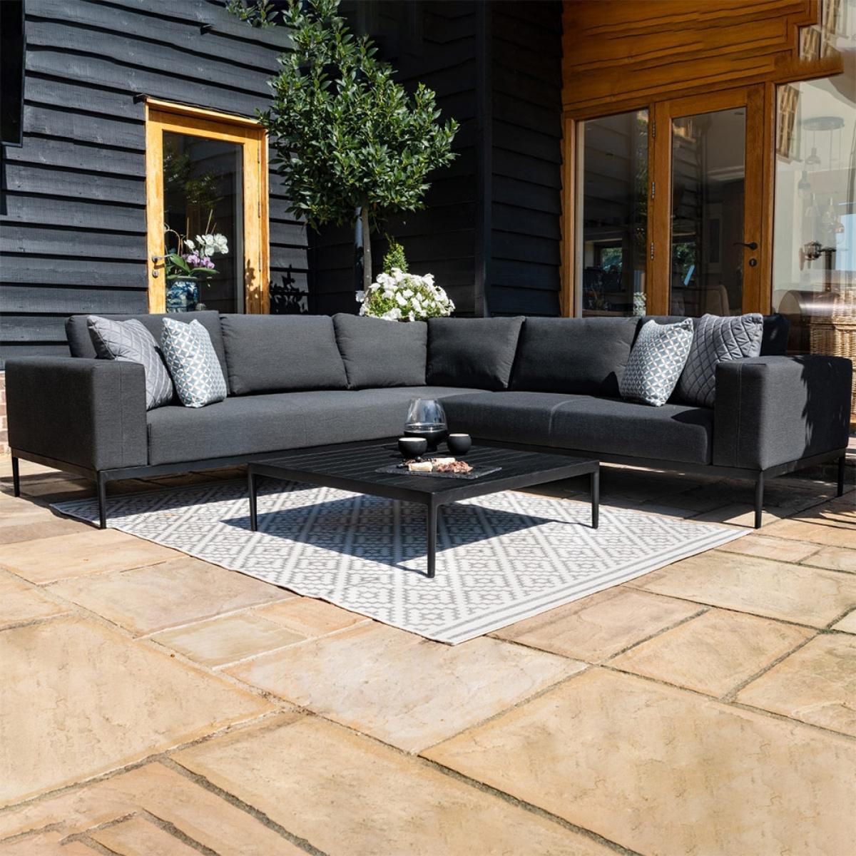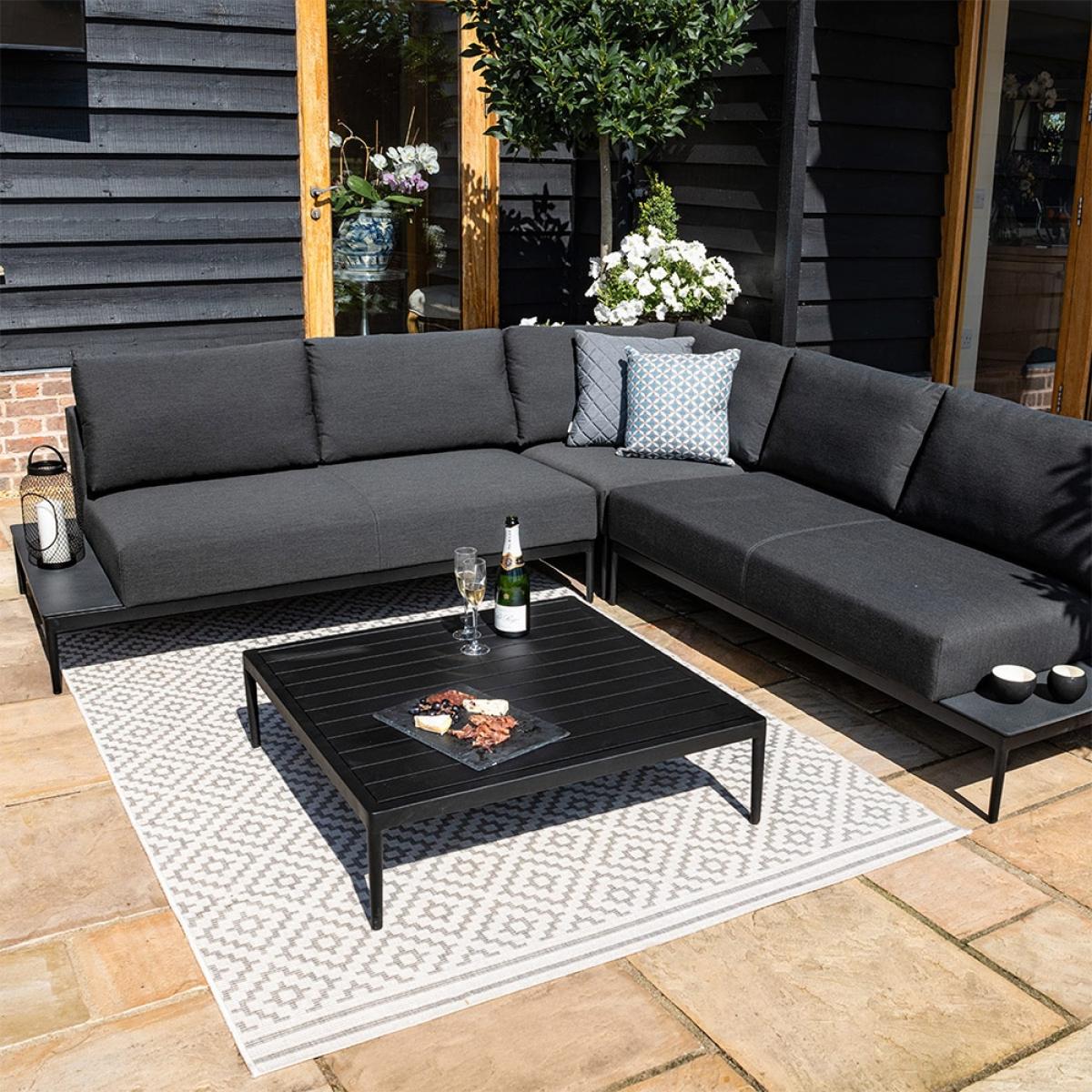 The Maze Rattan Eve Corner Sofa Set has a modern, stylish and laid back design which will add the perfect finishing touch to your outdoor area. With the large square table that caters for low-level seating, you will find yourself completely relaxed with all nibbles and drinks you could ask for within easy reach at all times. But wait that's not all. This clever sofa has a secret, with its removable sofa arms transforming into stylish side tables it will completely change the look and feel of your outdoor space. Now sit back and get those feet up!.