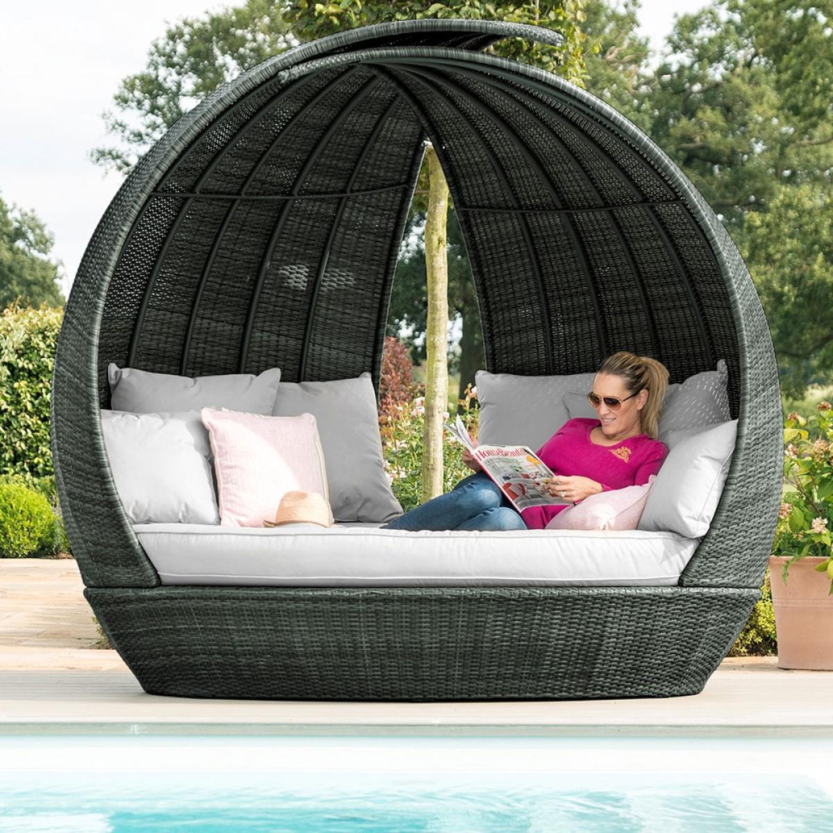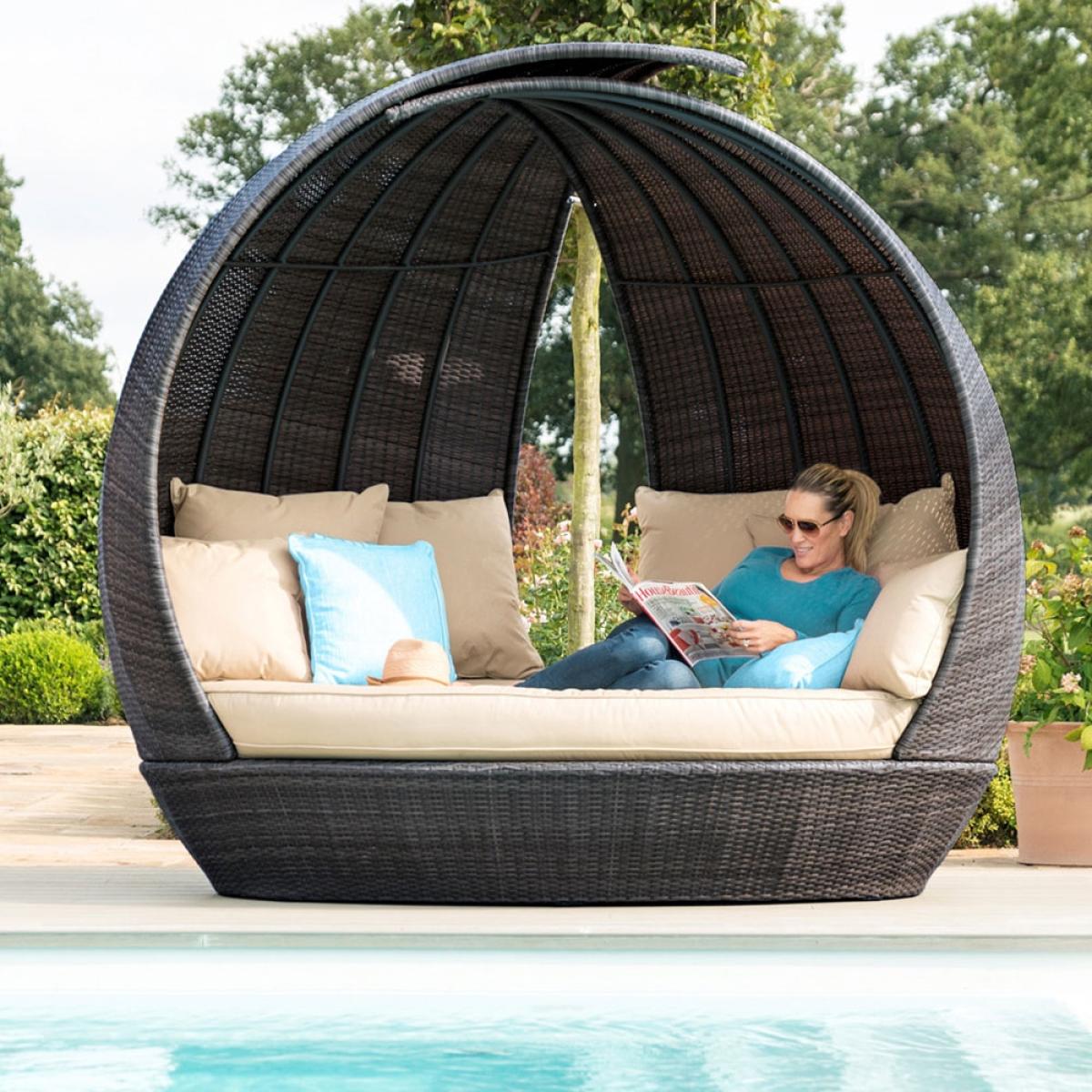Sure to make an impact in your garden the Maze Rattan Lotus Daybed is the perfect spot to relax in the summer sun. Manufactured from the highest quality PU rattan woven onto a powder coated aluminium frame, with its unusual wrap-around design, this stunning maze. Rattan garden bed. Will be a centrepiece in your garden. The maze. Rattan garden day bed is a. Vailable in 2 colours; brown or grey, the canopy is ideal to shade yourself from the sun. Whether it's to catch up on that latest read or to spend quality time with the other half this. Maze rattan daybed. Will be a wonderful retreat.
