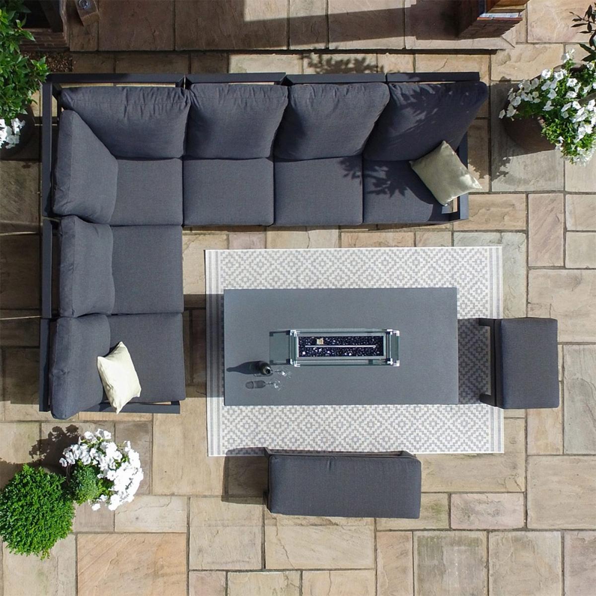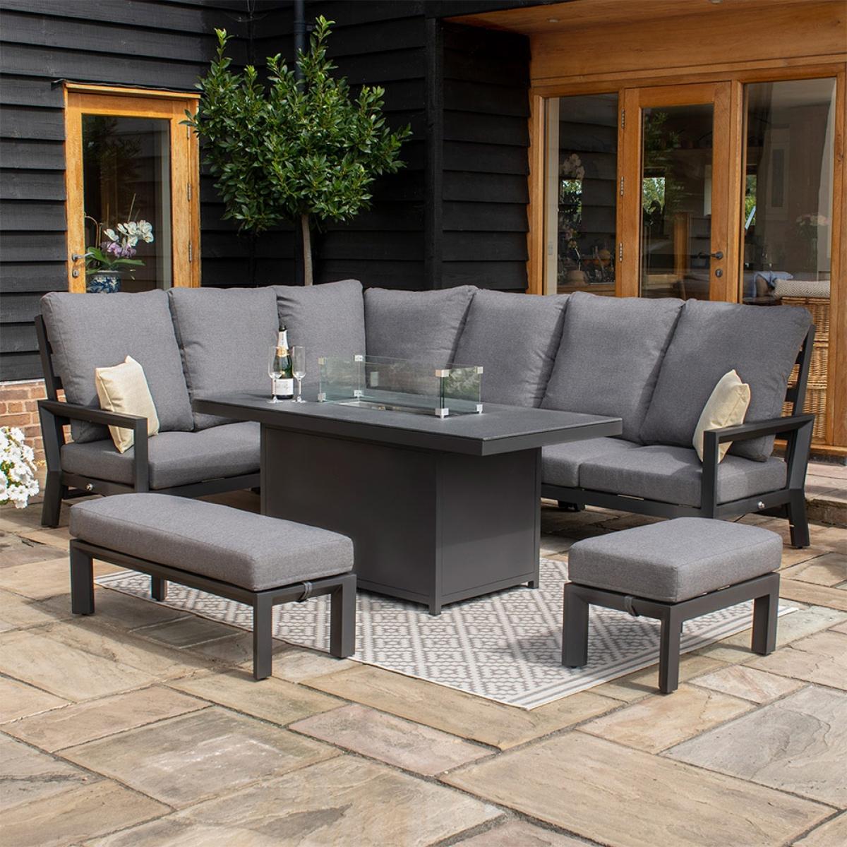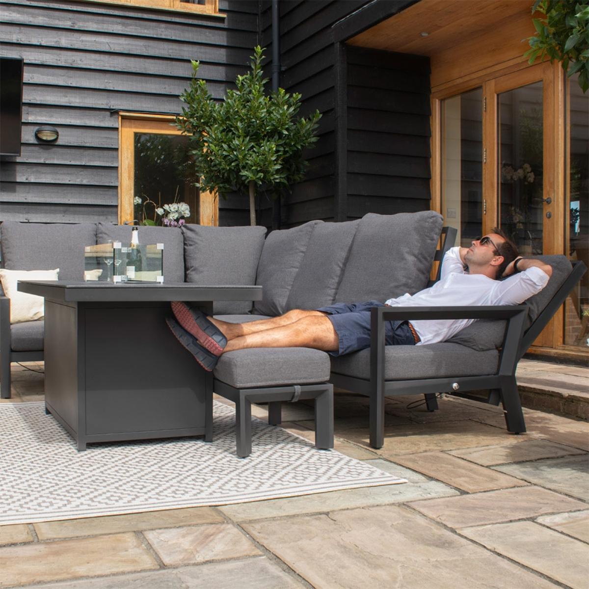 Bringing comfort and luxury to your garden, the Maze Rattan Manhattan Reclining Corner Dining Set With Fire Pit Table is the perfect set for you and your family to enjoy that summer sun! All five chairs have the option to fully recline so you can all lounge around and soak up that summer sun. With the added bonus of foot stools you can kick of your shoes and fully relax into the deep sumptuous cushions. As the sun starts to set you can get the fire pit lit and get everyone to gather around, the multi-use footstools can double up as extra seating so everyone can get a front row seat to the fire! Time to crack open the beer I think!.