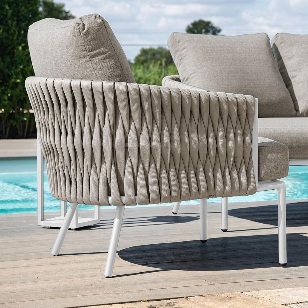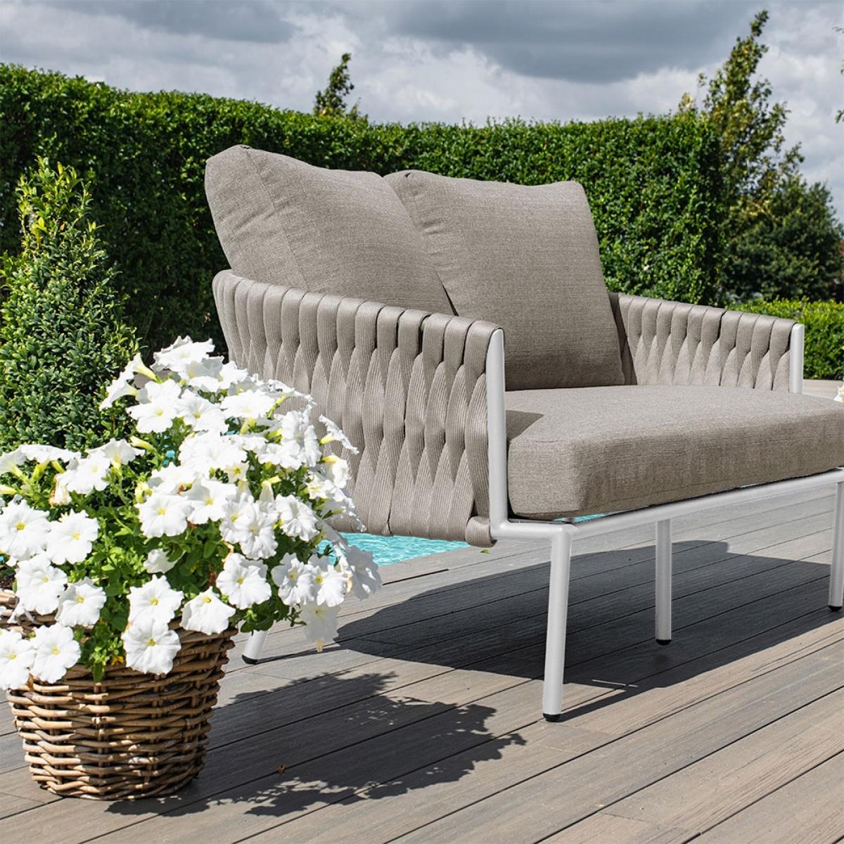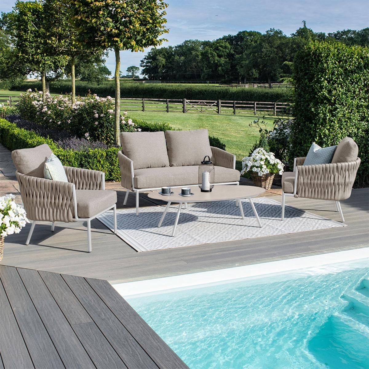 The Maze Rattan Marina 2 Seat Sofa Set will add a touch of glamour and sophistication to your outdoor space. Not only will this sofa set provide you with ultimate place to lounge in comfort thanks to its ergonomic shape, but its eye-catching woven rope design will create a stunning centrepiece in your outdoor space. The elegant low level spray-stone tempered glass coffee table will be the perfect place for tasty nibbles and maybe a cheeky jug of Pimm's!.