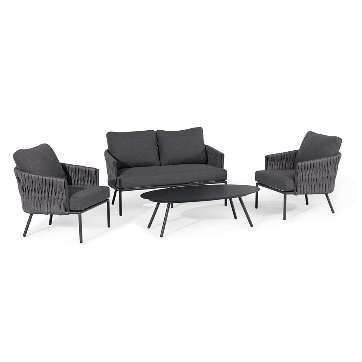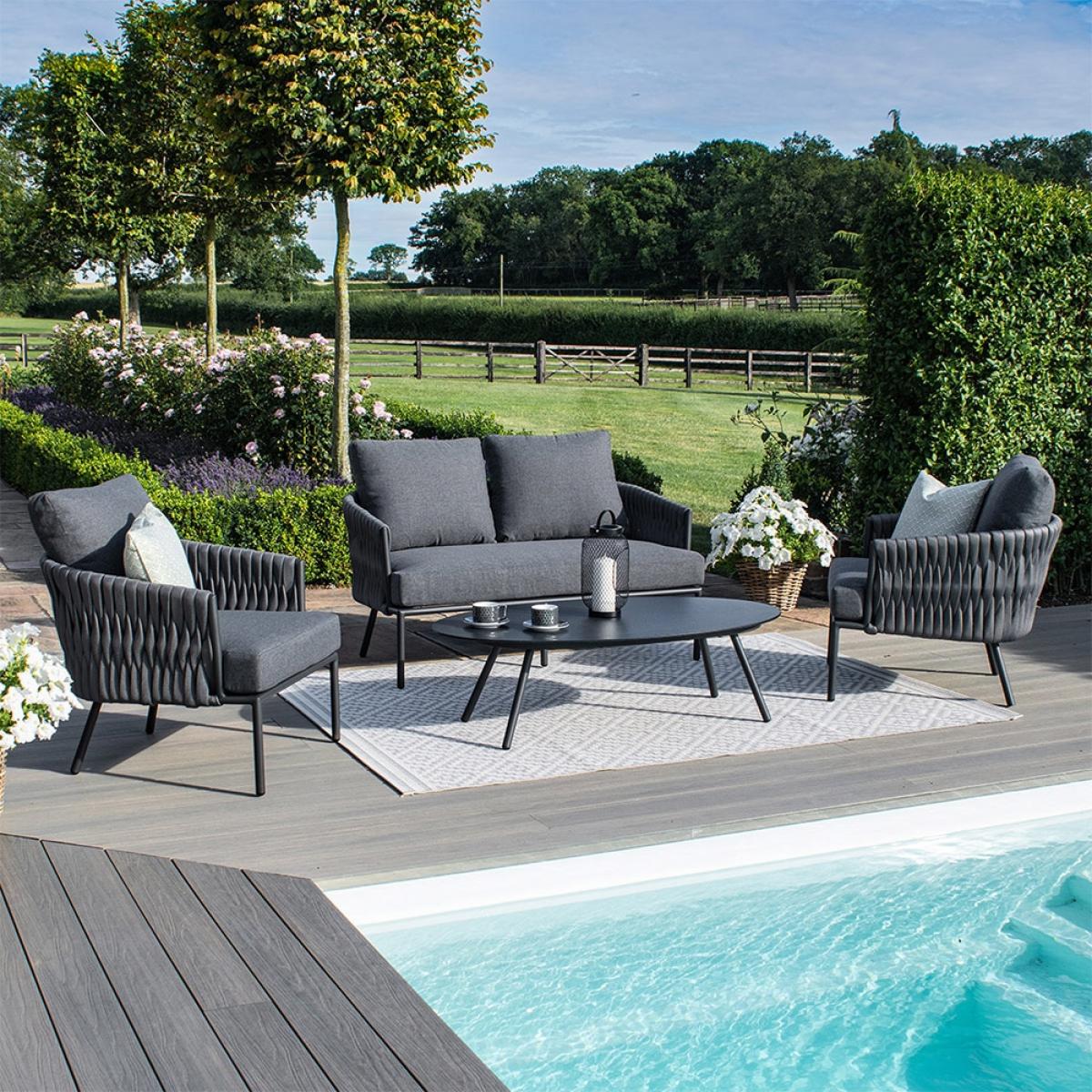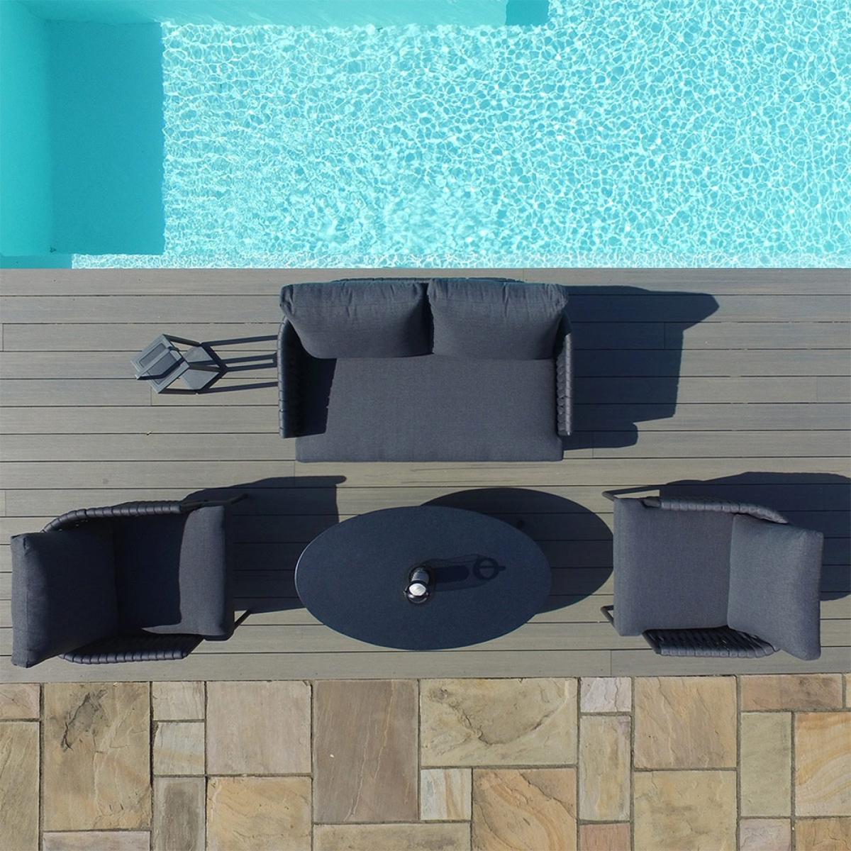 The Maze Rattan Marina 2 Seat Sofa Set will add a touch of glamour and sophistication to your outdoor space. Not only will this sofa set provide you with ultimate place to lounge in comfort thanks to its ergonomic shape, but its eye-catching woven rope design will create a stunning centrepiece in your outdoor space. The elegant low level spray-stone tempered glass coffee table will be the perfect place for tasty nibbles and maybe a cheeky jug of Pimm's!.