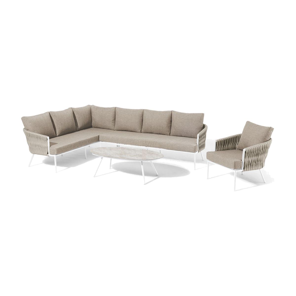 I love this corner group because of its sleek rattan design and neutral sandstone finish, making it versatile for various outdoor settings. It works particularly well in contemporary or Scandinavian-style gardens, adding a relaxed yet refined feel. When styling, consider pairing it with neutral or pastel cushions for added comfort, and incorporate low-maintenance potted plants or lanterns to enhance its inviting look. Practical tips include placing it on a good-quality outdoor rug to define the space and layering with weather-resistant textiles to keep it stylish and functional across seasons. This set is ideal for creating a cosy outdoor lounge for entertaining or family relaxing in style.