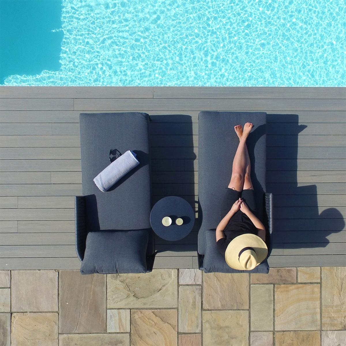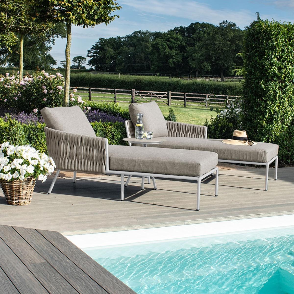 The Maze Rattan Marina Double Sunlounger Set is a match made in heaven. These clever sunloungers can be placed together to create a large sumptuous double lounger perfect for stretching out and lounging all day long! Or if you feel like sharing the sun loungers can be split apart to create two separate loungers and with the addition of the side table you will be able to keep those refreshments topped up and within easy reach at all times! Finished with a gorgeous thick rope weave this stand out piece will be sure to turn heads and turn the neighbours green with envy!.