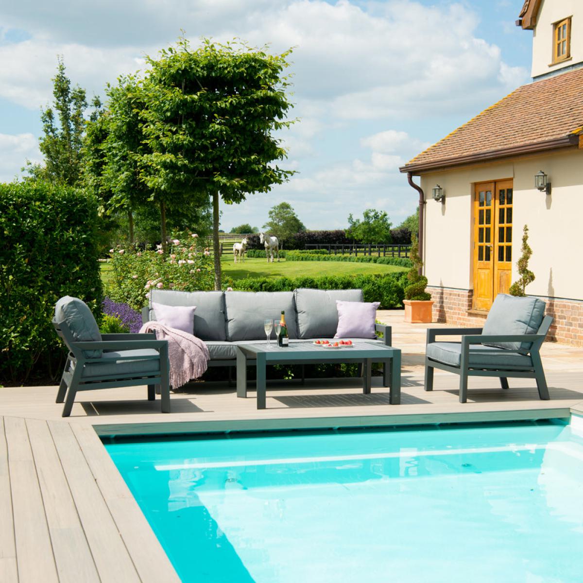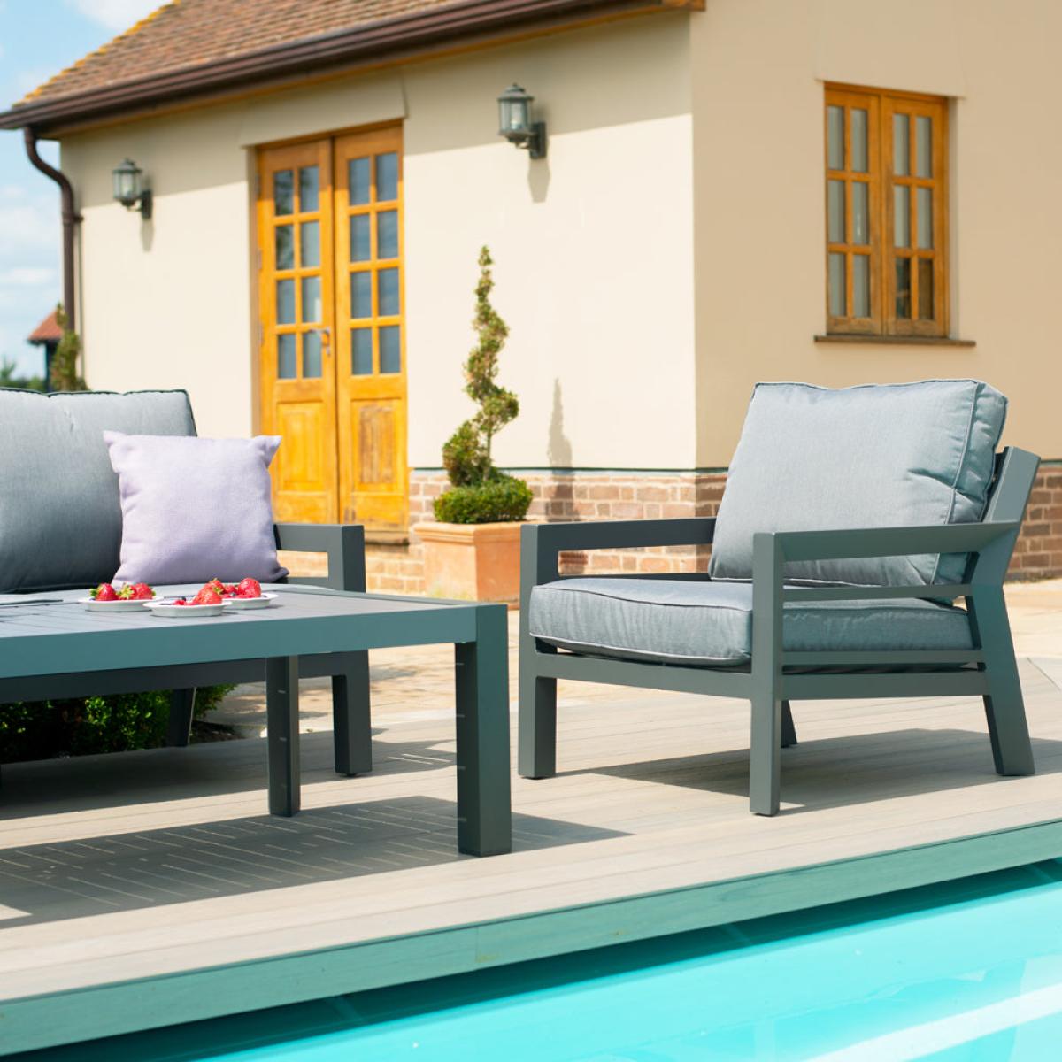 Another new line in the Aluminium Range is the New York. The grey aluminium framework makes it maintenance free and has thick padded cushions to sink into. To complement this sofa set, is a slatted aluminium coffee table which matches the rest of the framework. *Moot Trading Ltd is not a lender and acts only as an introducer. The credit product is provided by Klarna Bank AB (publ). Credit is only available to permanent UK residents aged 18 and over, subject to status. Terms and conditions apply. Please note that the following products are not regulated by the FCA: Pay in 30 days and Pay in 3 instalments. Read More.