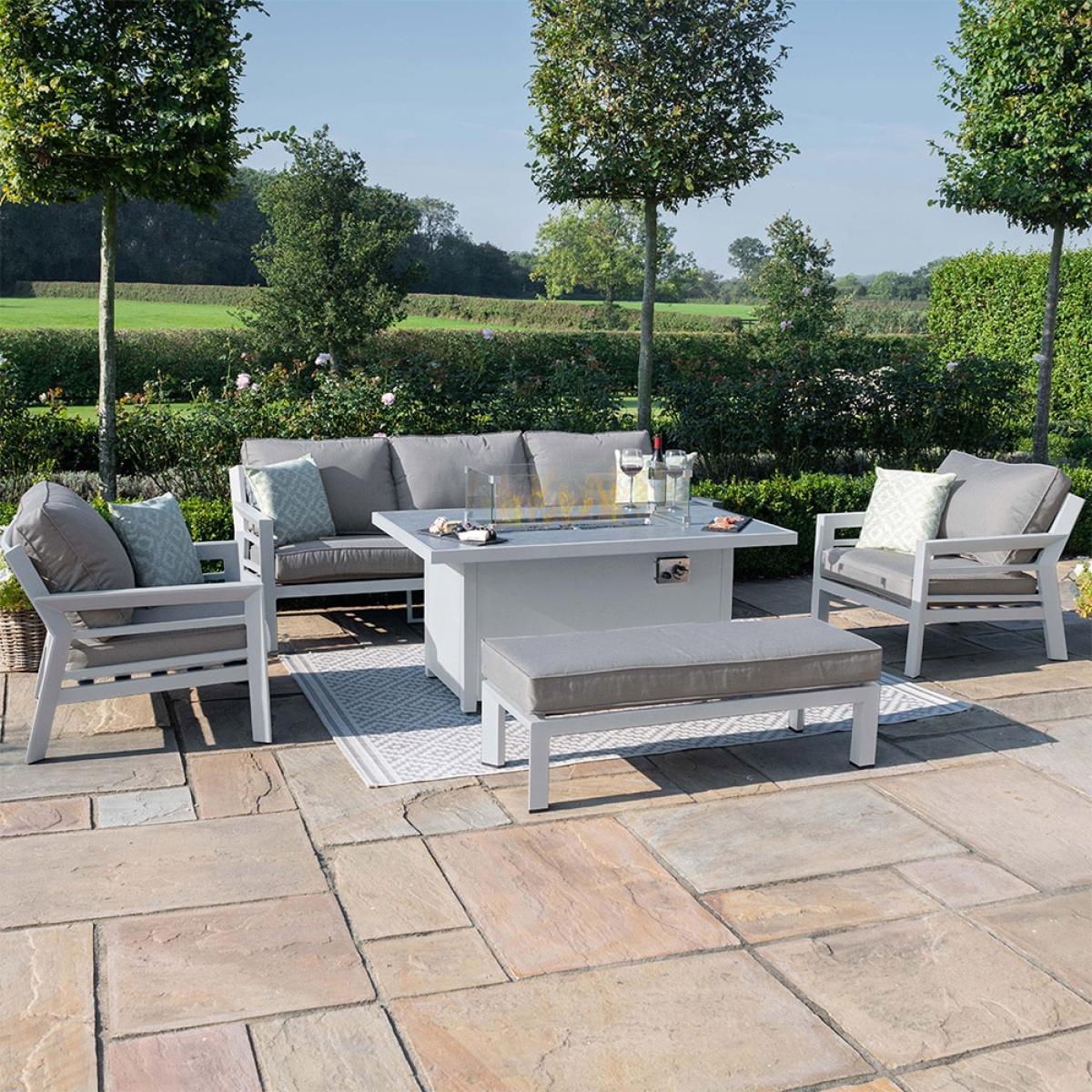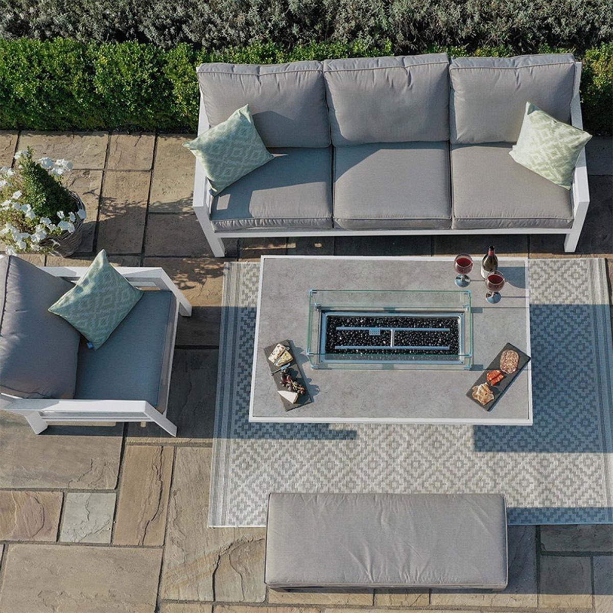 Looking for the perfect spot to relax, gather round, catch up and create memorable moments? Stop the searching! We give you the Maze Rattan New York 3 Seat Sofa Set With Fire Pit Table. Get the flames going, crack open a bottle of bubbly and toast the occasion! Easily seating 7; the deep filled cushions and angled seat backs offer comfort and support while you all relax around the fire pit table. Each cushion is showerproof and UV resistant too, so no matter the weather your set is protected. Expertly crafted, the UV, rust, frost and water resistant frames can be left outside all year round without worry! Rain, shine, night and day; the Maze Rattan New York Sofa Set will be at the centre of all your favourite evenings!.