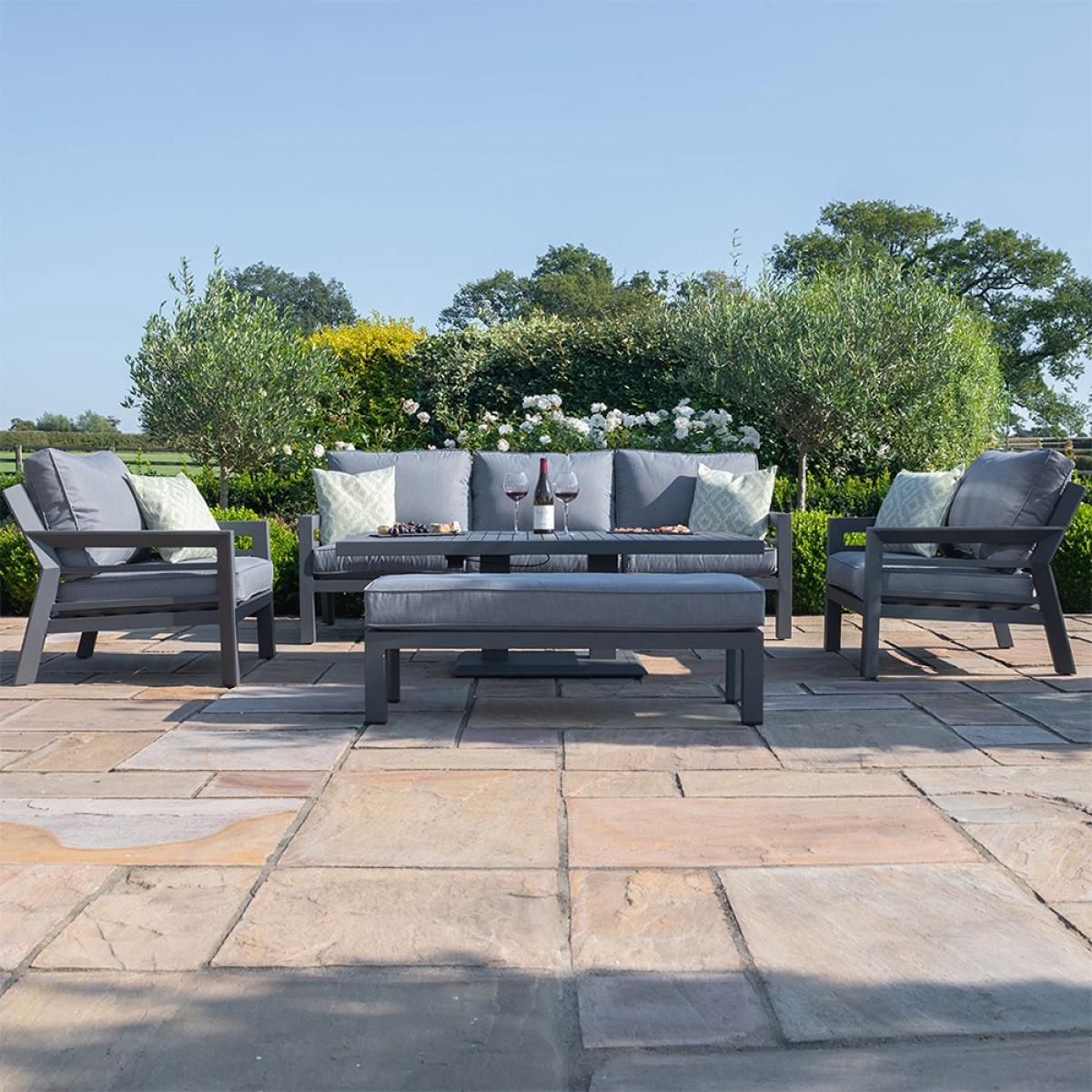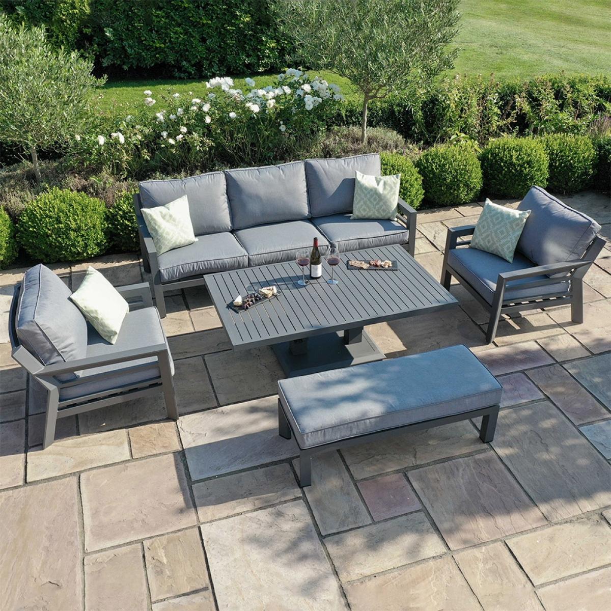 Aluminium Garden Sofa with Height-Adjustable Table Furniture Set - Grey / 1 Height-Adjustable Table, 2 Armchair, 2 Loveseat