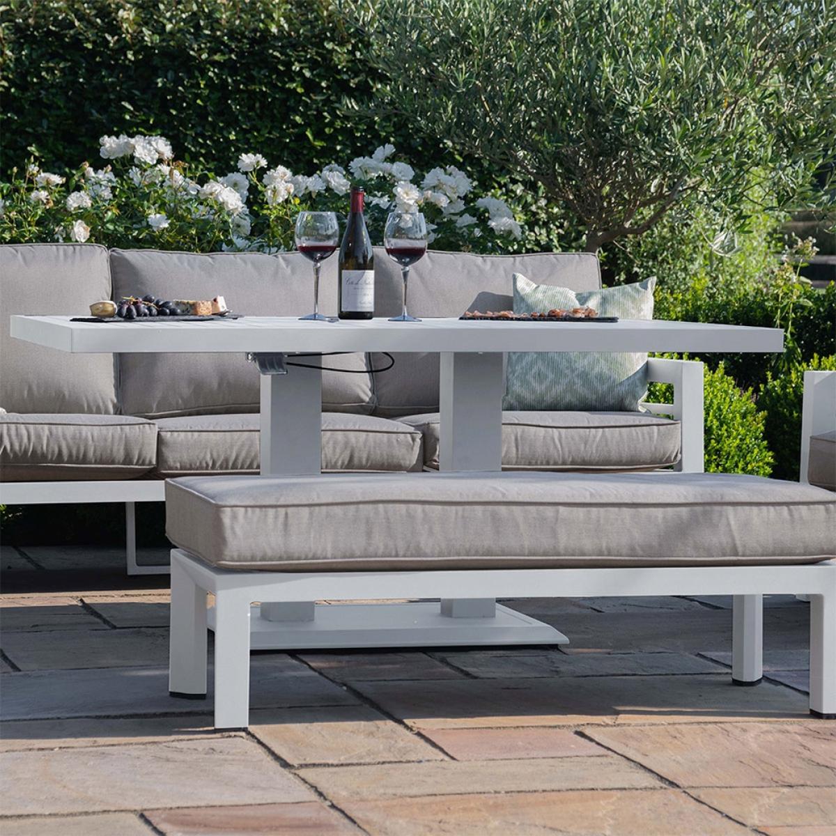 Create a unique and stylish garden area with the Maze Rattan New York 3 Seat Sofa Set With Rising Table. This set will be perfect for spot for some late afternoon wining and dining. Imagine being sat around with close friends as you pop open a nice bottle of burgundy and snack on a delicious baked camembert with plenty of crusty bread to dip, delicious! On a hot summers day you can fill the table with cooling refreshments and lounge out on the sumptuous deep filled cushions, if you fancy a snooze we promise not to tell!.