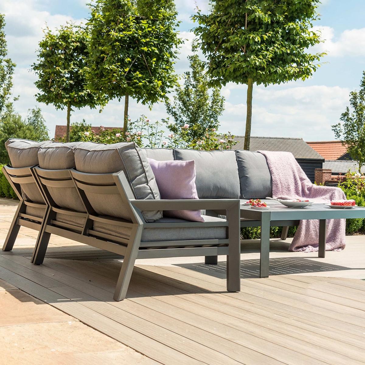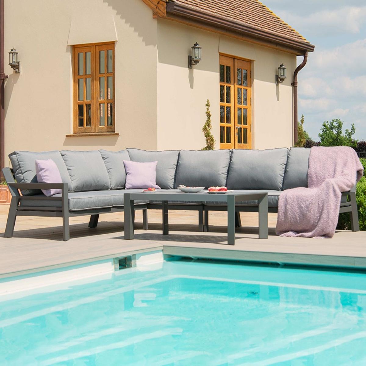 Lounging doesn't have to just be for the living room with the Maze Rattan New York Corner Sofa Set! A sturdy aluminium frame is complemented by matching grey cushions, perfect for those relaxing summer afternoons. The set also comes with a handy coffee table, ideal for entertaining out on the patio. The set is also completely weatherproof meaning you can leave outside all year round, the cusions are even waterproof! You certainly wont be disappointed by the New York Corner Sofa Set, that's for sure.