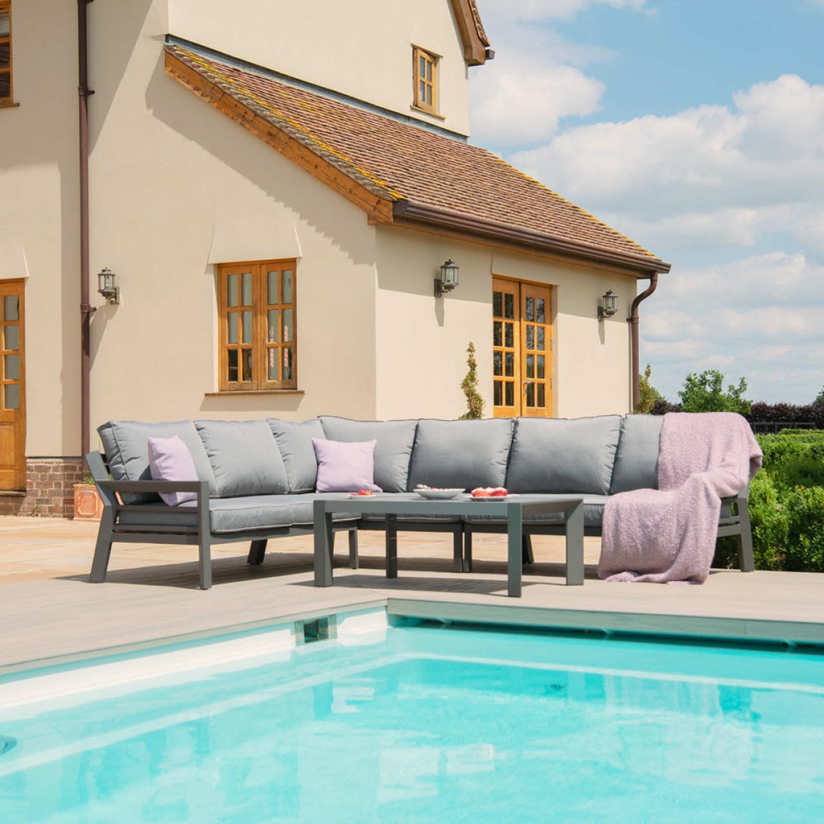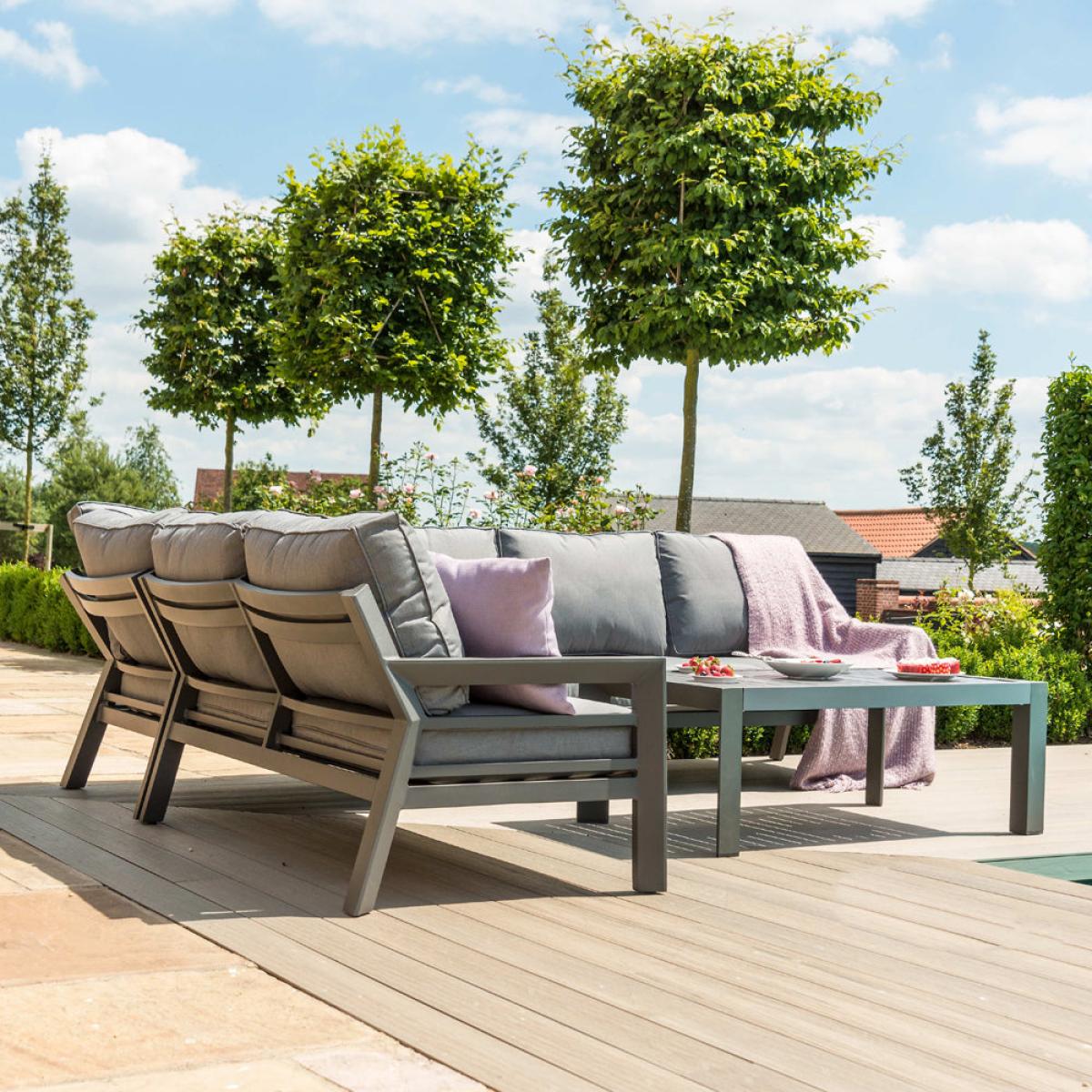 Another new line in the Aluminium Range is the New York. The grey aluminium framework makes it maintenance free and has thick padded cushions to sink into. If space is limited, the corner sofa easily seat 6 people. To complement this sofa set, is a slatted aluminium coffee table which matches the rest of the framework. The Maze Rattan Aluminium range features simple, tidy designs that immediately constructs a contemporary garden space. The minimalist frames support complementing cushions to complete the look. Unique Features: - Leave frame outside 365 days a year - UV and front resistant - High strength aluminium frame - Light weight, powder-coated and rust resistant aluminium frame - Easy care and low maintenance. *Moot Trading Ltd is not a lender and acts only as an introducer. The credit product is provided by Klarna Bank AB (publ). Credit is only available to permanent UK residents aged 18 and over, subject to status. Terms and conditions apply. Please note that the following products are not regulated by the FCA: Pay in 30 days and Pay in 3 instalments. Read More.