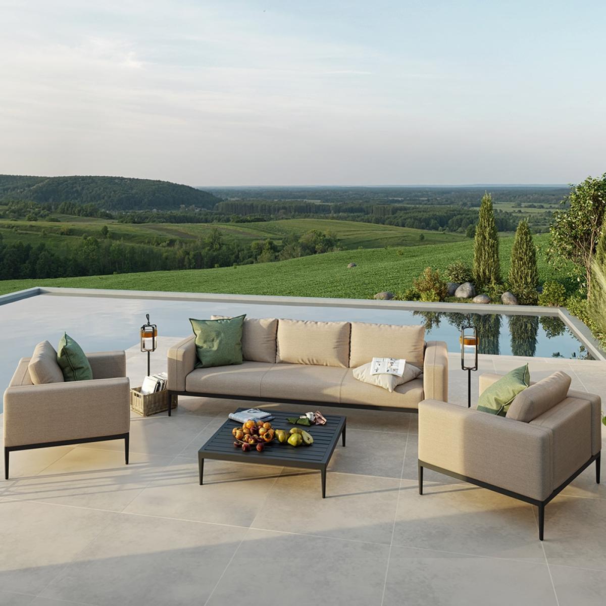 Its all about outdoor living and the Maze Rattan Eve 3 Seat Sofa Set just made this even more inviting. Oozing sumptuous elegance, it is hard to believe this outdoor sofa set is meant for your garden or patio. The generous three seat sofa and two armchairs are built on a strong but slender legged powder coated aluminium frames. A complementary square slatted aluminium low coffee table completes the set. Available in four different colour palettes the cushions are breathable and have quick dry technology. The fabric is easy care being water, UV, mould and stain resistant. A winter cover is also included so this garden sofa set can be left out year-round. Crazy right?!.