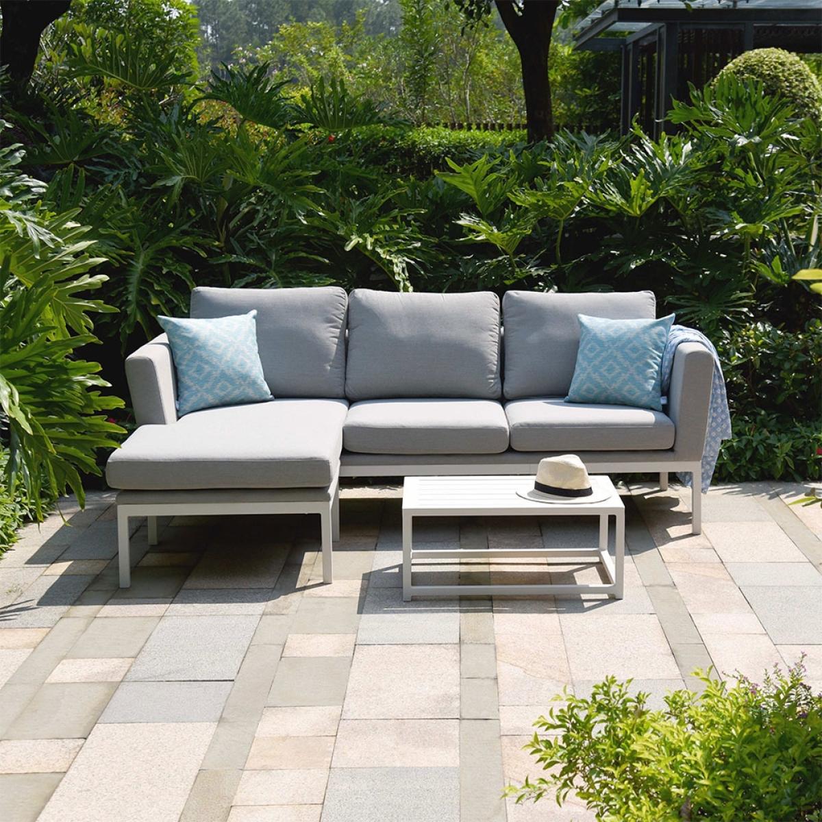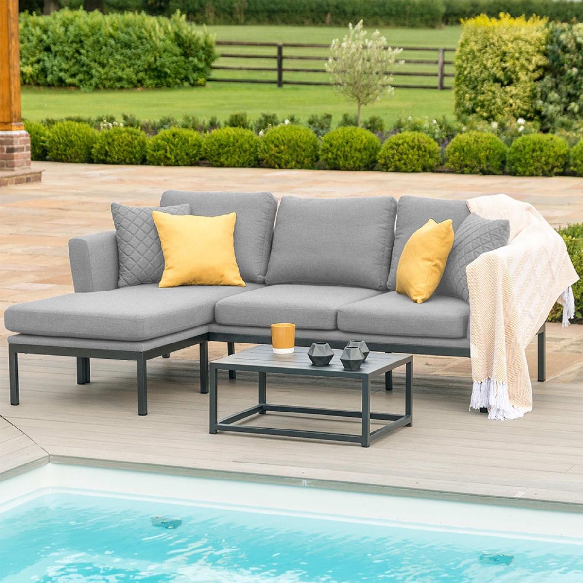 Just as comfortable and stylish as your living room sofa - the. Maze Rattan Outdoor Fabric Pulse Chaise Sofa Set is the crème de la crèmeof garden furniture! Available in a choice of colours; including a three seater outdoor sofa, the added chaise footstool section can be positioned on either side so you can pop your feet up and recline in the sunshine. The garden coffee table is another great addition! Keep refreshing drinks and snacks out with you while you relax. Ticking every box, a protective cover comes included too! Although, as the frames and cushions are completely weatherproof and UV and frost resistant, you won't be kept up at night if you've forgotten to pop the cover on. The deep filled cushions have been cleverly designed with an open cell structure making them fast-drying - so, if you've been unlucky with the weather, you can quickly get back outside and enjoy your garden furniture set as soon as the sun makes a reappearance! Part of the Pulse collection from Maze Living, select the set to suit your outside space.