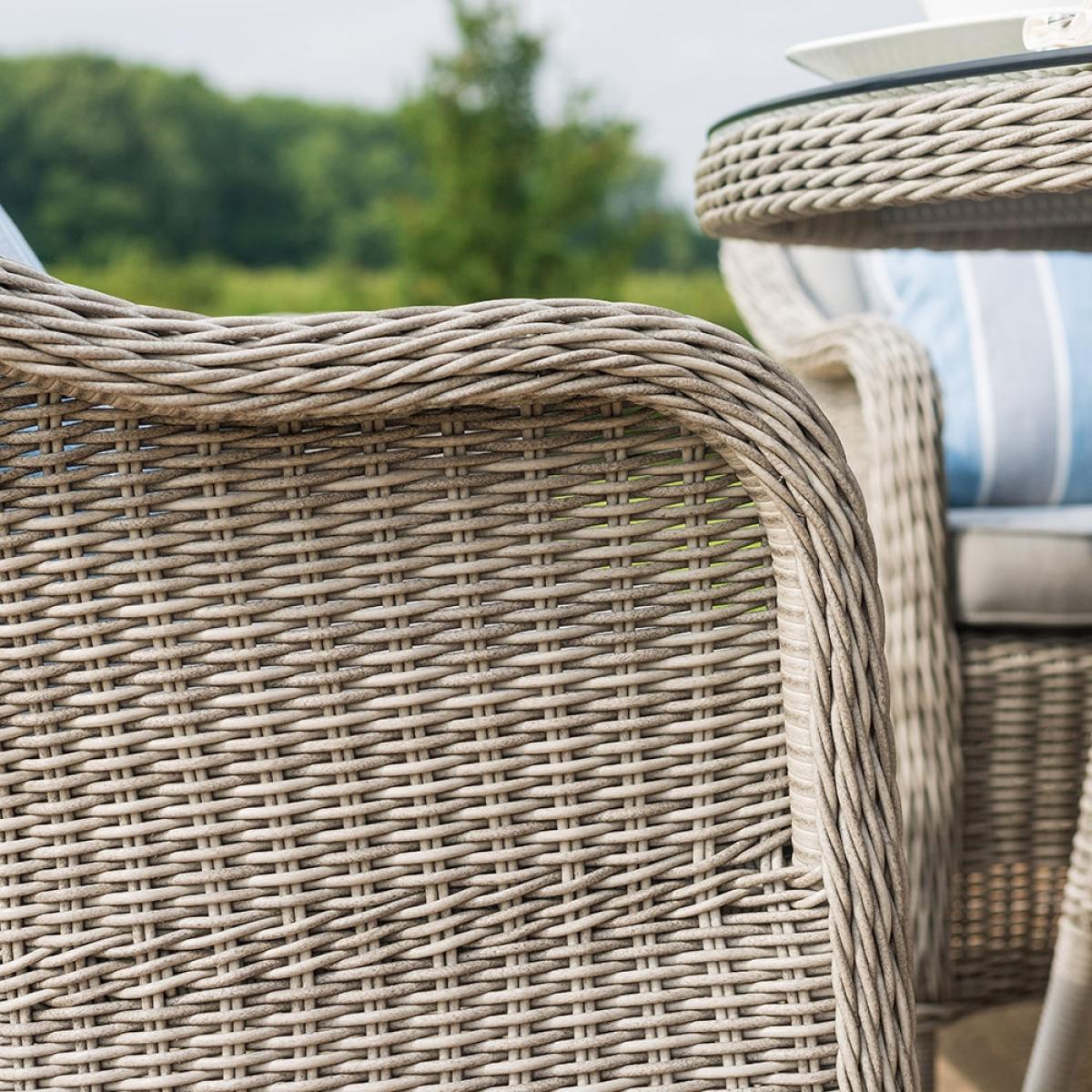Give your alfresco dining an instant revamp with the Maze Rattan Oxford 4 Seat Round Dining Set. Manufactured from the highest quality PU rattan woven onto a powder coated aluminium frame, this fabulous piece of garden furniture can be used all year round and withstand even the harshest of weather. The beautiful grey weave paired with the grey of the showerproof cushions gives this set an elegant finish, that would look gorgeous wherever it is placed. Whether entertaining guests or just to enjoy some quality time with the family this set will be perfect.