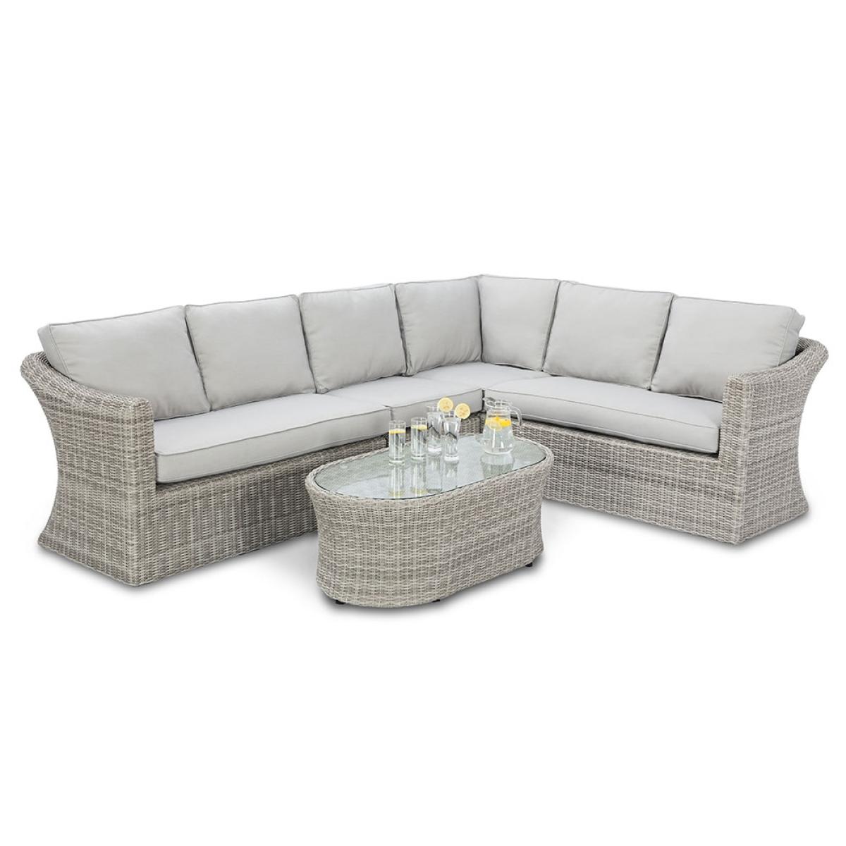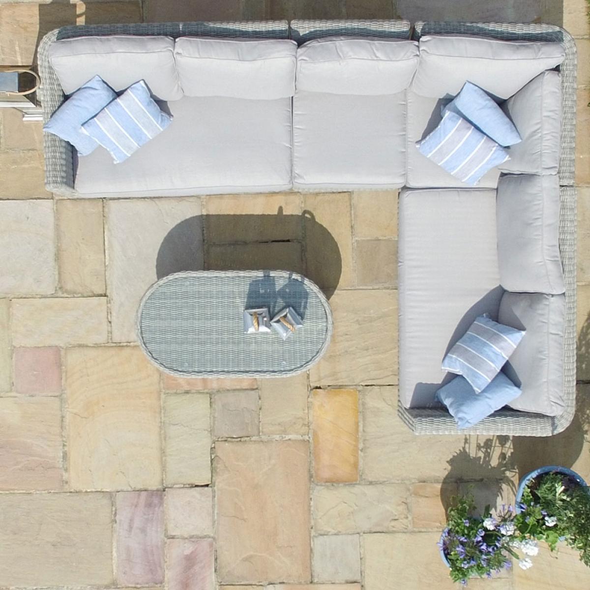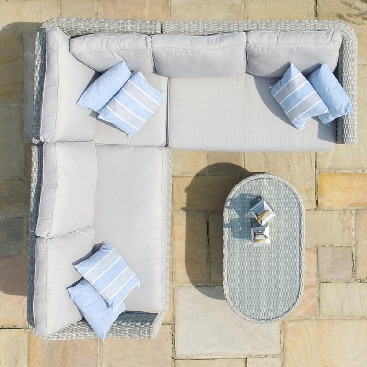 The ideal spot to relax with friends and family, the Maze Rattan Oxford Corner Garden Sofa Set would make a wonderful focal point in your garden or patio. Complete with 2 sofa sections, 1 corner section, and a coffee table plus the large sofa including an extra section, this fabulous piece of modular furniture would look lovely in any garden or patio. With a glass top coffee table, there's even a stop to pop that beverage and snacks. Manufactured from the highest quality PU rattan woven onto a powder coated aluminium frame, whether enjoying some quality time with the family or catching up with friends, this set will be just the ticket.