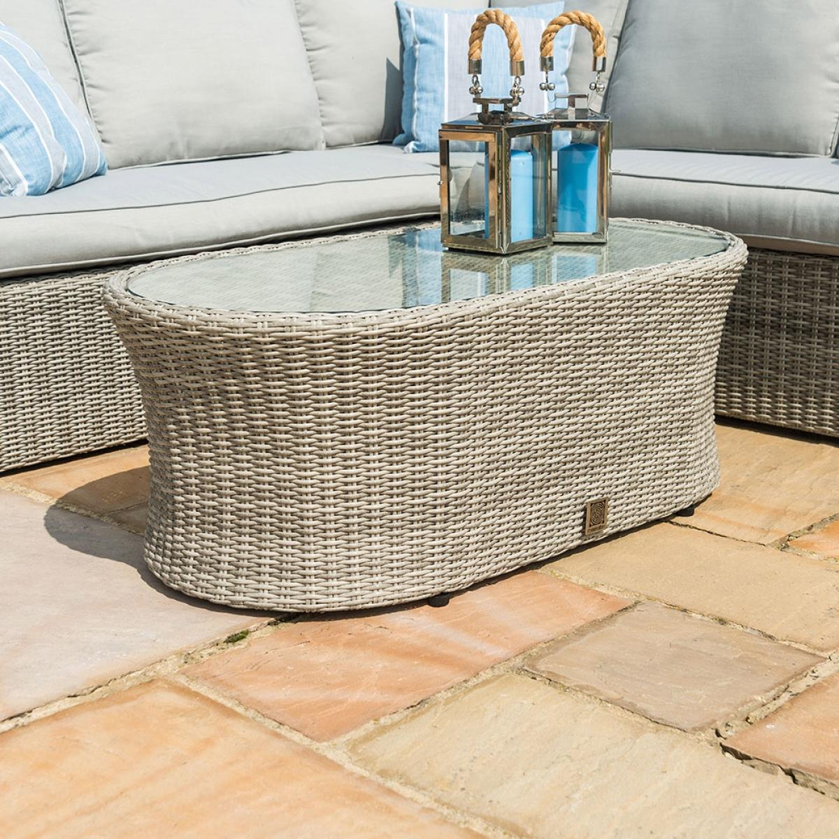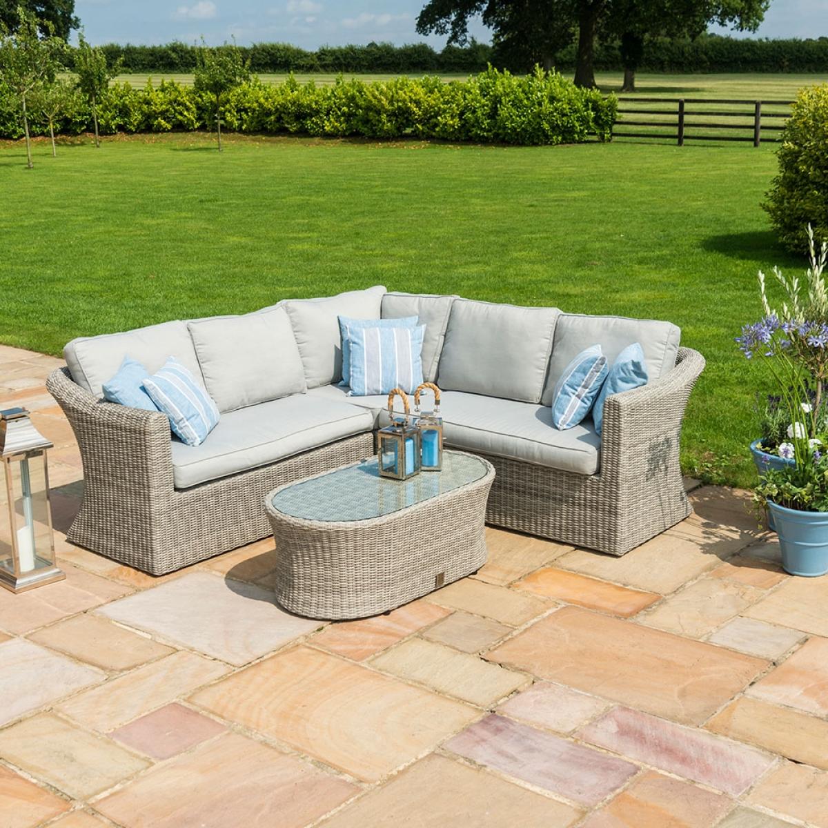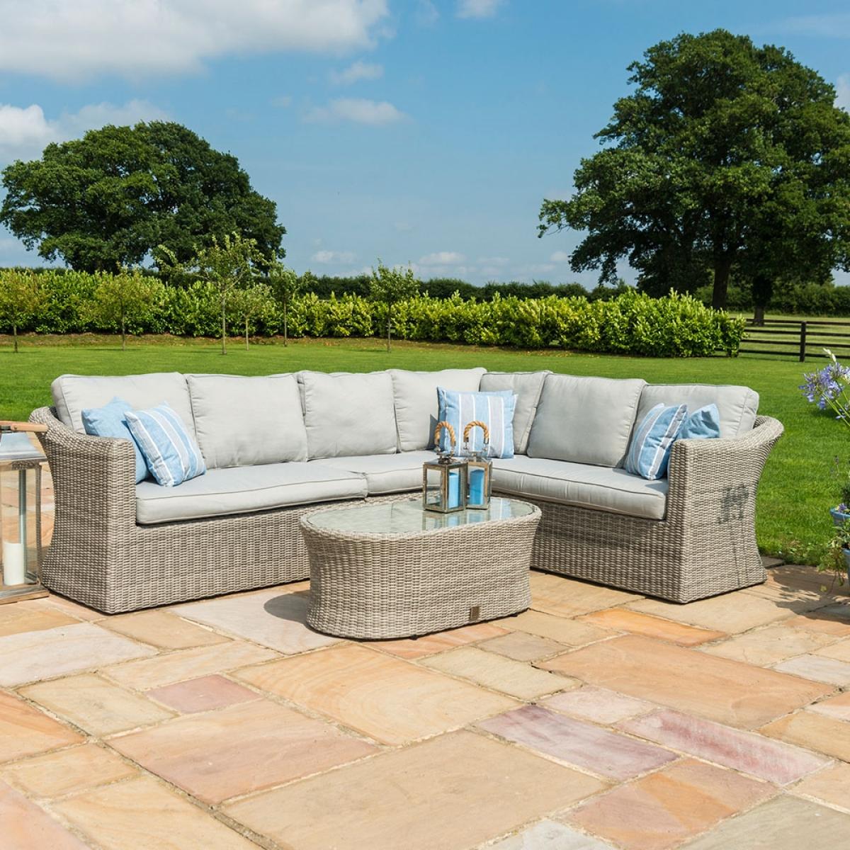 The ideal spot to relax with friends and family, the Maze Rattan Oxford Corner Garden Sofa Set would make a wonderful focal point in your garden or patio. Complete with 2 sofa sections, 1 corner section, and a coffee table plus the large sofa including an extra section, this fabulous piece of modular furniture would look lovely in any garden or patio. With a glass top coffee table, there's even a stop to pop that beverage and snacks. Manufactured from the highest quality PU rattan woven onto a powder coated aluminium frame, whether enjoying some quality time with the family or catching up with friends, this set will be just the ticket.