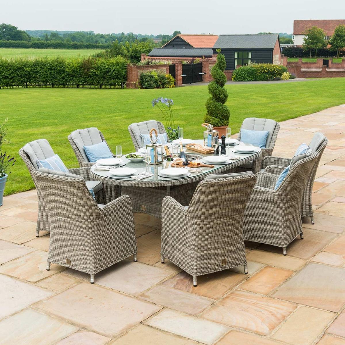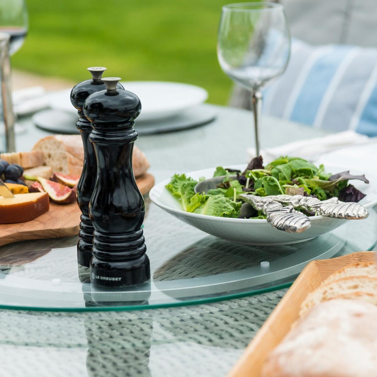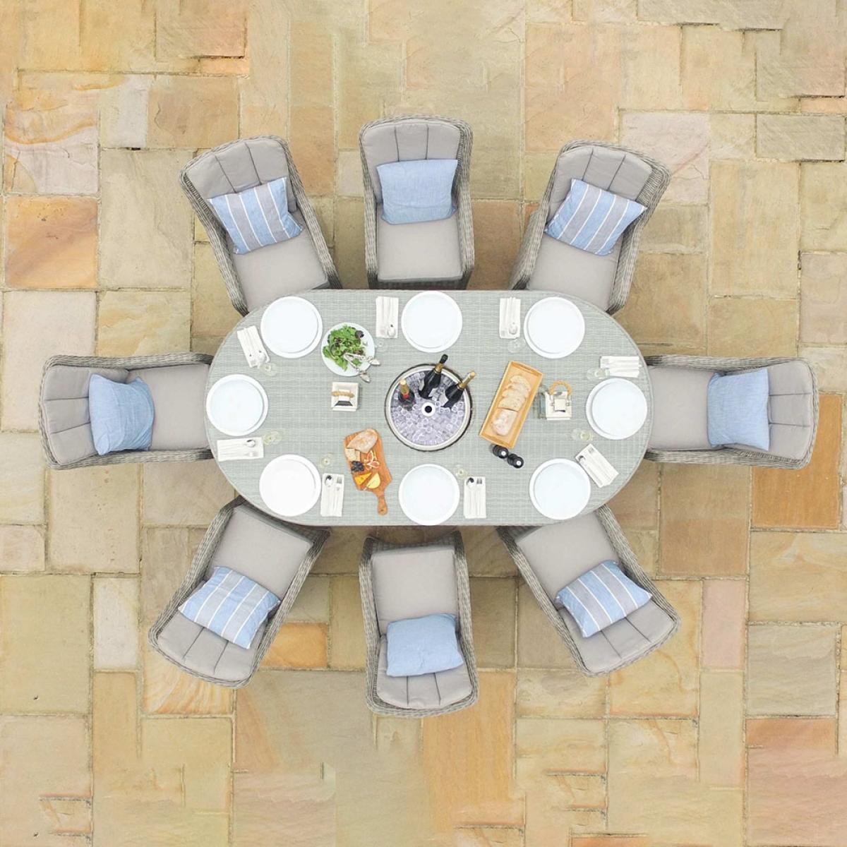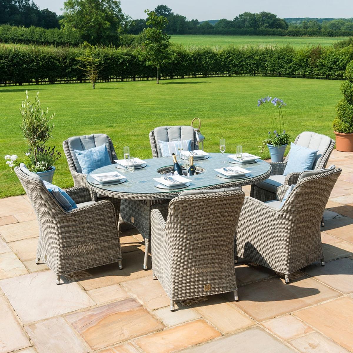 Keep your Prosecco chilled to perfection with the Oxford Oval Ice Bucket Dining Set from Maze Rattan. Manufactured from the highest quality PU rattan woven onto a powder coated aluminium frame, it comes with an integrated ice bucket and lazy susan, catering to all your needs. So if you're hosting a party and need the drinks chilling on ice - no problem, or a cheeky lunch with friends where you want to share the olives; this table can do both. The subtle grey weave and cushions pair beautifully together, giving a timeless finish. So sit back, relax and soak up those rays!.