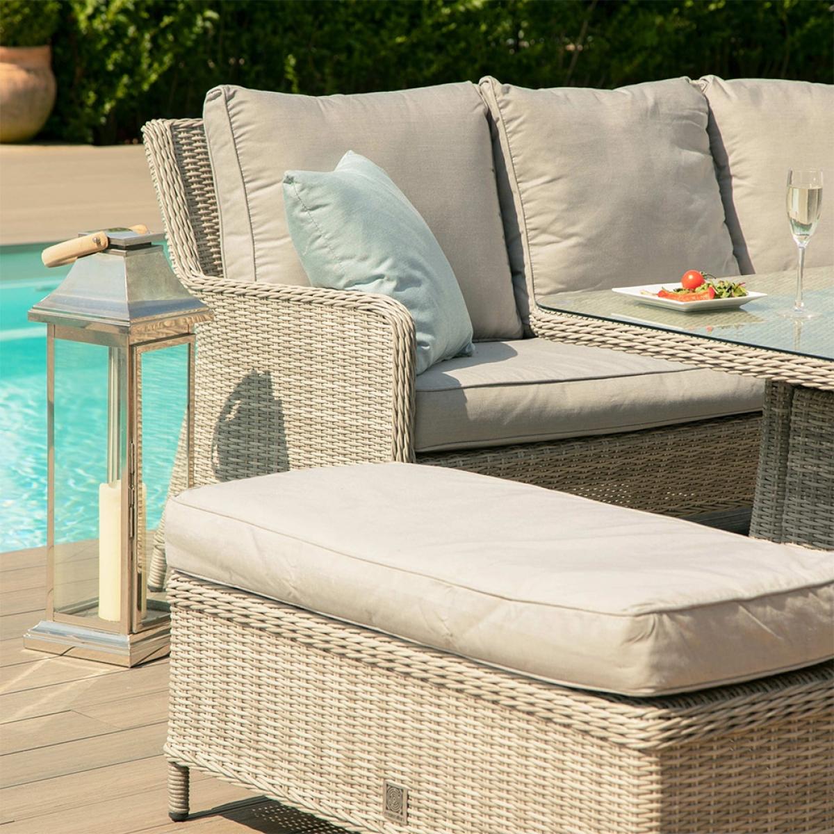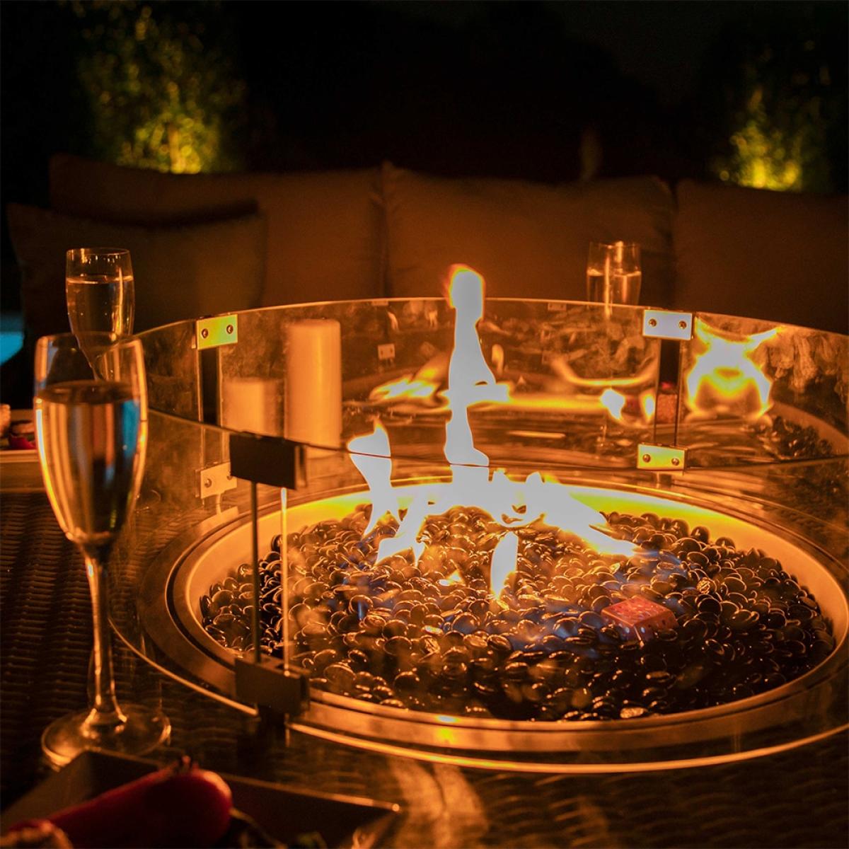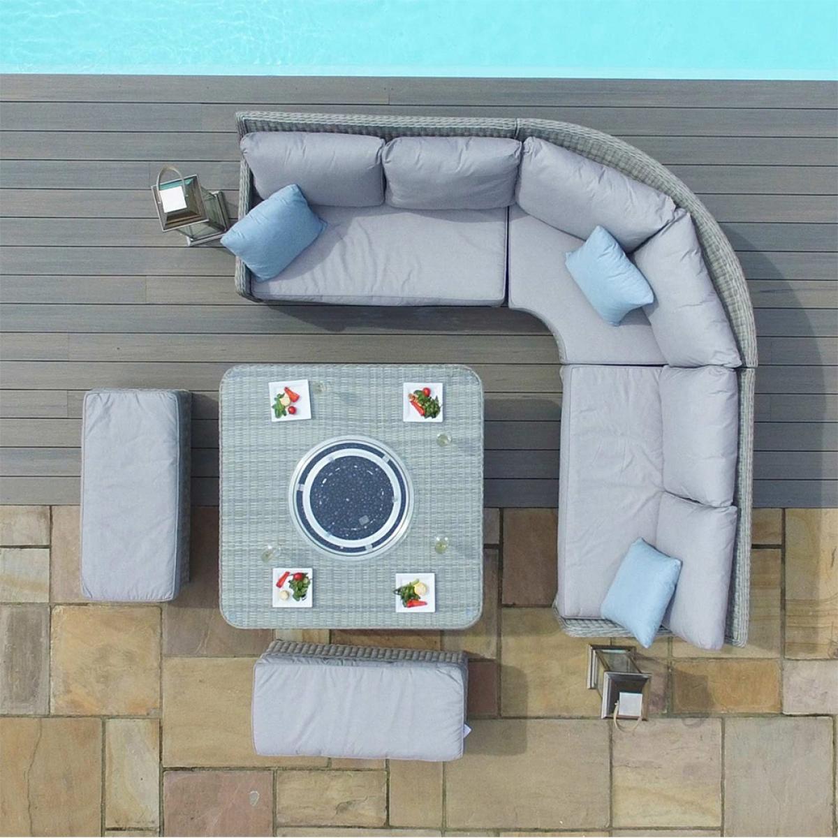 If you like your furniture to serve more than one purpose, t. He Maze Rattan Oxford Royal Corner Dining Set With Fire Pit will not disappoint! If it's a few glasses of wine with the warm glow of the fire that you're after this set will be perfect. During the day you can cover the fire with a lazy Susan and have the whole table top at your disposal to lay out a feast for any guests that come to visit. The calming effect of fire will help friends and family open up to a well-needed catch-up. Ideal for BBQs or just to create a warming atmosphere as the sun begins to set.