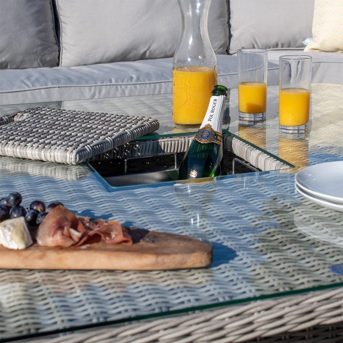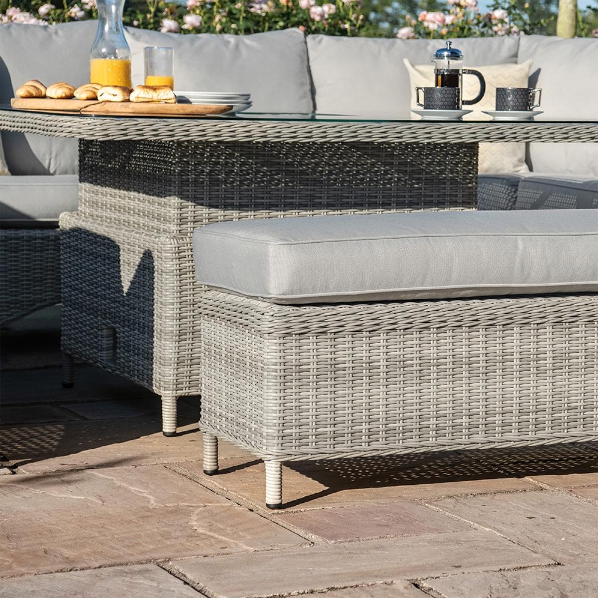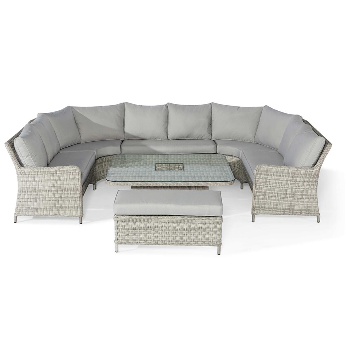 In need of some new outdoor furniture to fit the whole family around? The Maze Rattan Oxford Royal U-Shaped Sofa Set With Rising Table is the perfect lounging area! You can go from causal afternoon nibbles to formal dining in seconds with the help of the rising table! The luxurious filled cushions will have your body relaxing from the moment you sink in, with the advantage of the cushions being showerproof and UV resistant you have full access to enjoy this set 365 days a year! Outdoors isn't just for summer evenings, enjoy this set throughout the colder months to with some cosy blankets and maybe a hot toddy or 2! Sit back and relax well into the night, just chuck on a few extra layers and a thick blanket and let yourself unwind.