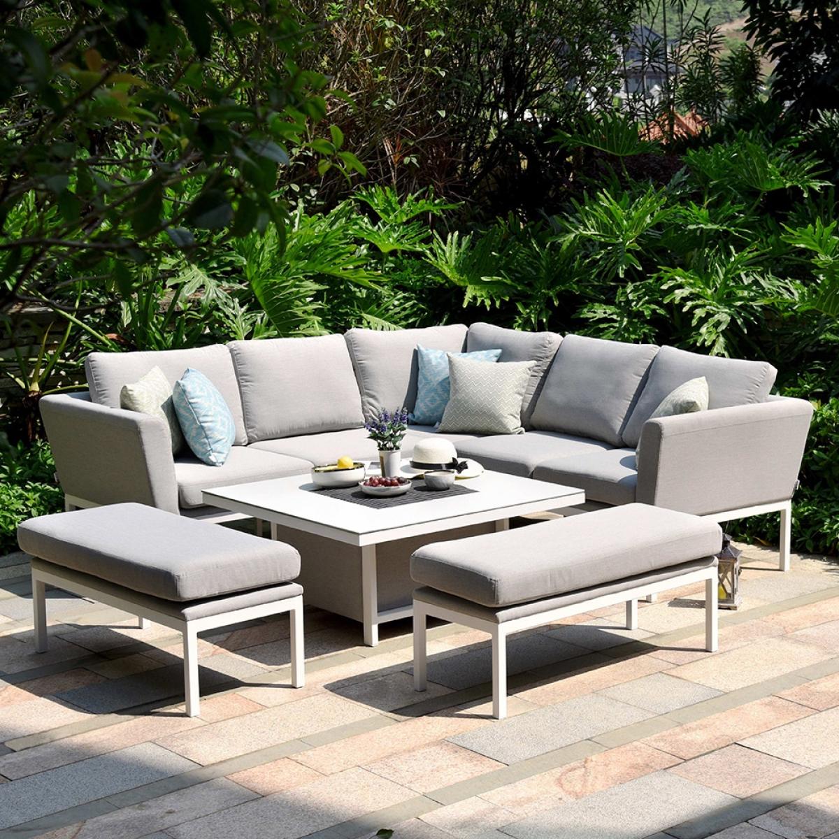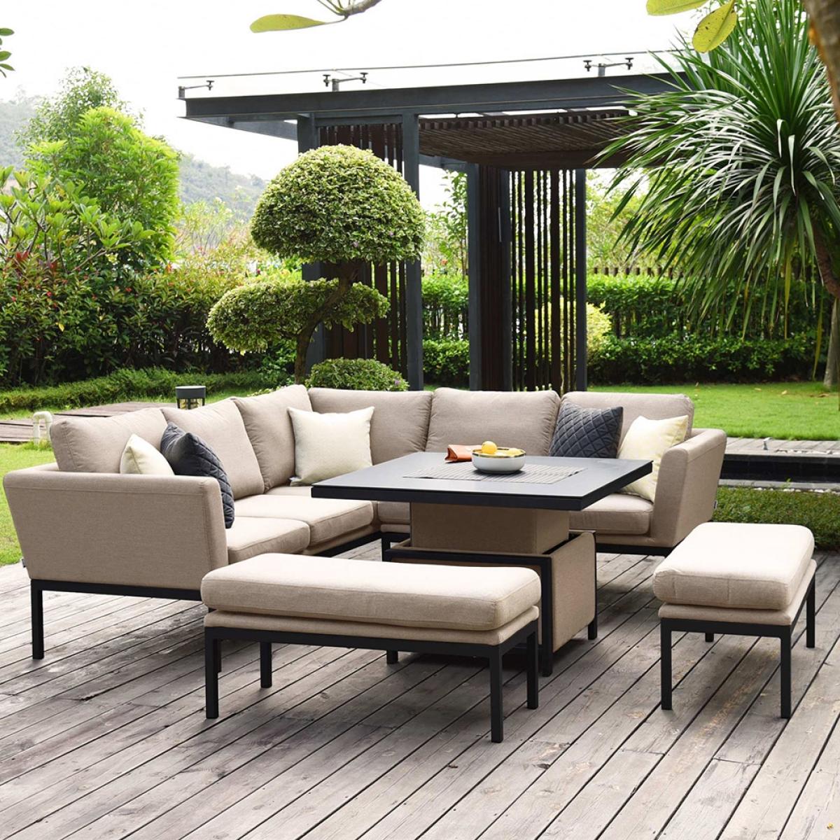 Stylish, practical and comfortable; give your garden an update with the Maze Rattan Pulse Square Corner Dining Set with Rising Table! Including a height adjustable table; choose to use yours as a coffee table or dining table depending on the occasion. One minute you're enjoying a meal surrounded by family and friends and the next you're snuggled up on the corner sofa with a chilled glass of wine in hand. It doesn't get much better than that! Plus the modular sofa and benches have all been covered in weatherproof, UV and stain resistant materials, so you can leave your garden furniture outside, all year round, without worry. And with a lightweight aluminum frame, move your furniture around and adapt your set to suit you! Available in a choice of colours, from dark charcoal to light grey, create your new favourite spot!.
