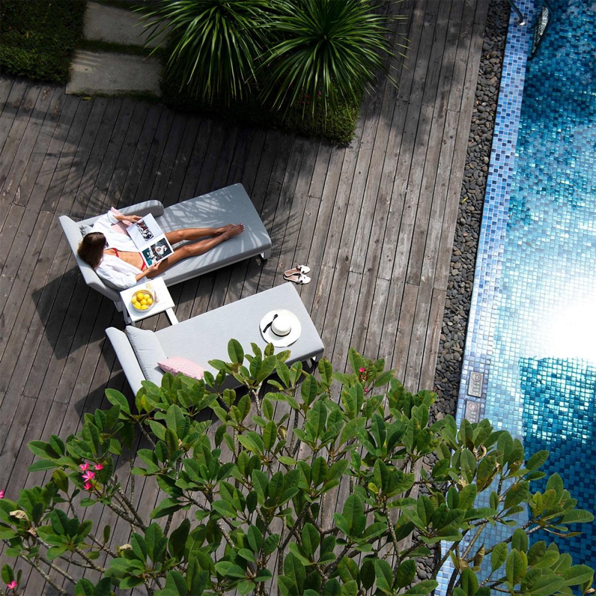 Suns out, loungers out with the. Maze Rattan Unity Double Sun Lounger! Style and comfort never looked so good and this double sun lounger means that you can share chilled summer vibes with your loved one or bestie. La Vita fabrics which are trusted by yacht makers, make for a robust outdoor fabric, resistantto the weathers and stain/UV resistant too. High performance foam specially designed for outdoor living, offers optimum comfort and the robust aluminium frame can even be left outside all year too, rust free! If there is one investment to make this summer, it's got to be the unity double sun lounger!.