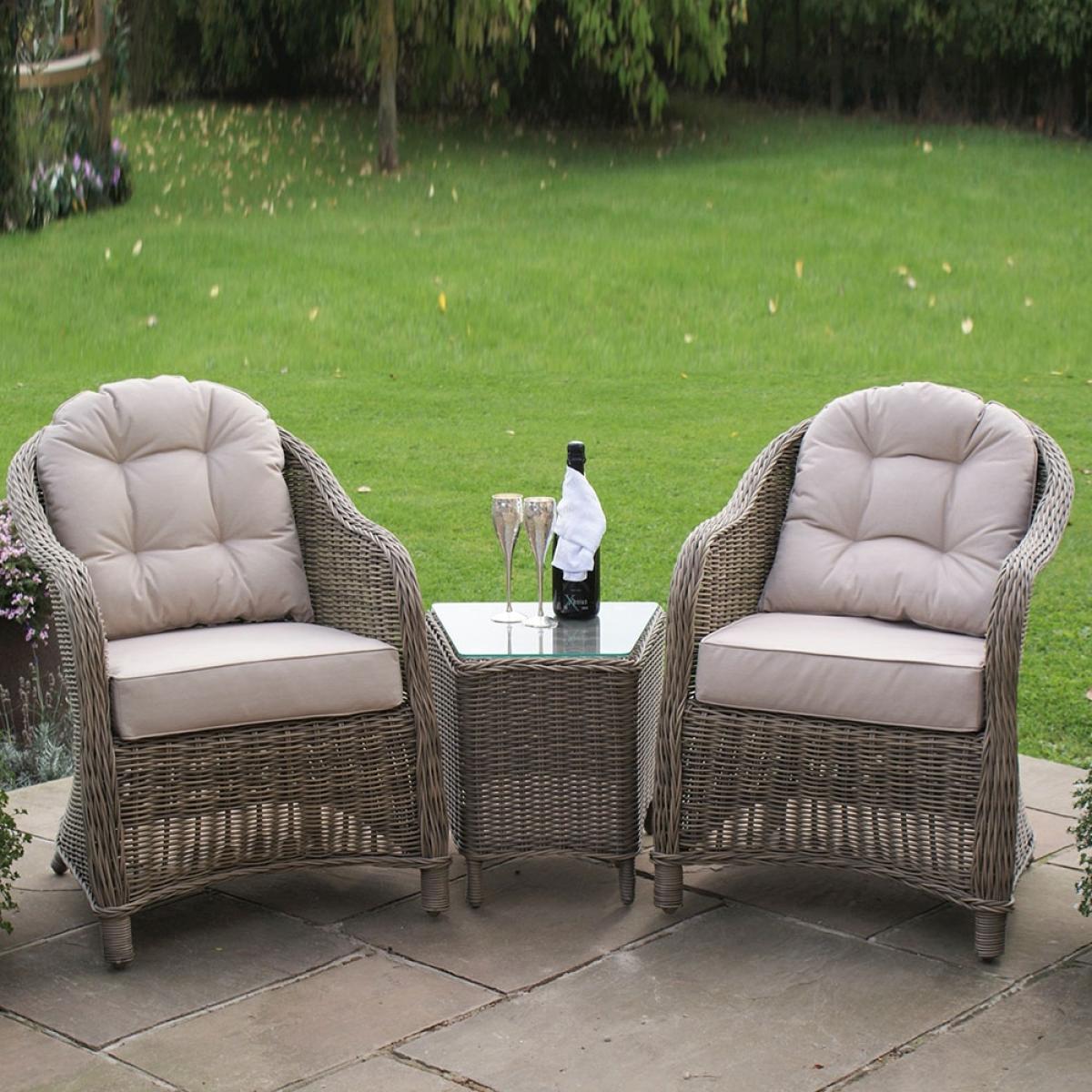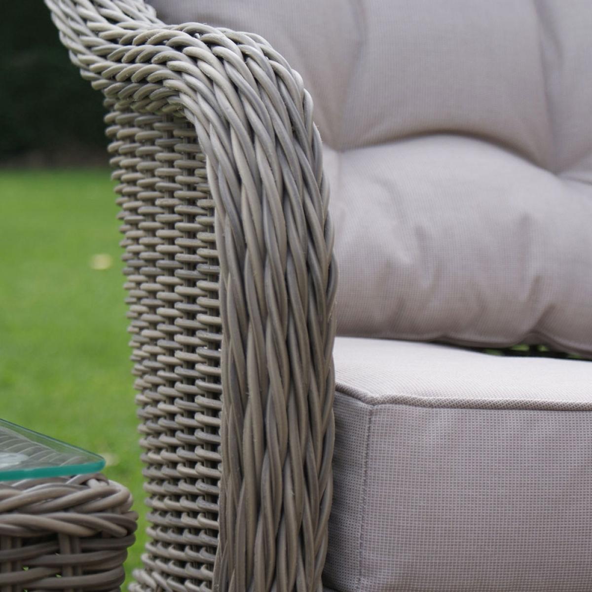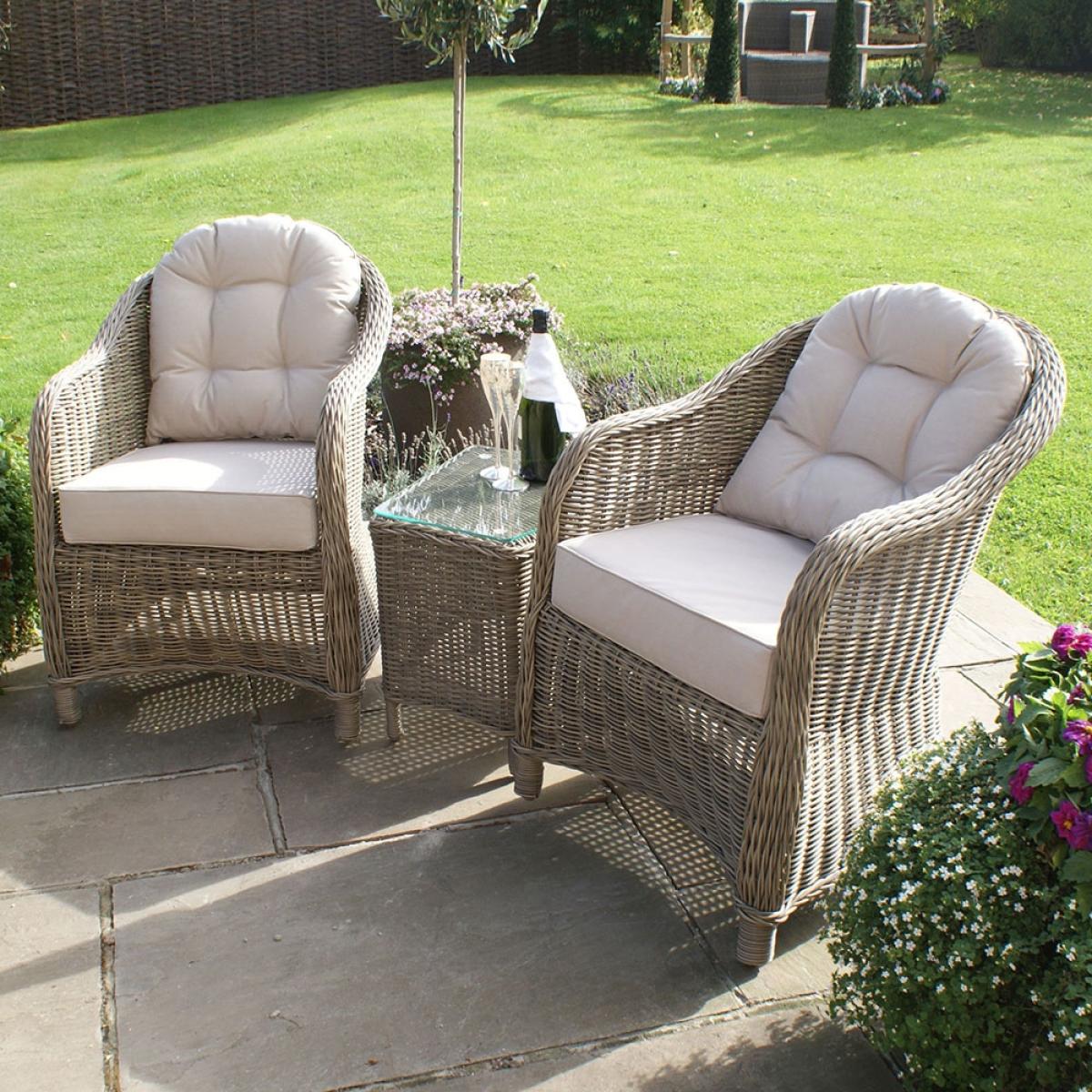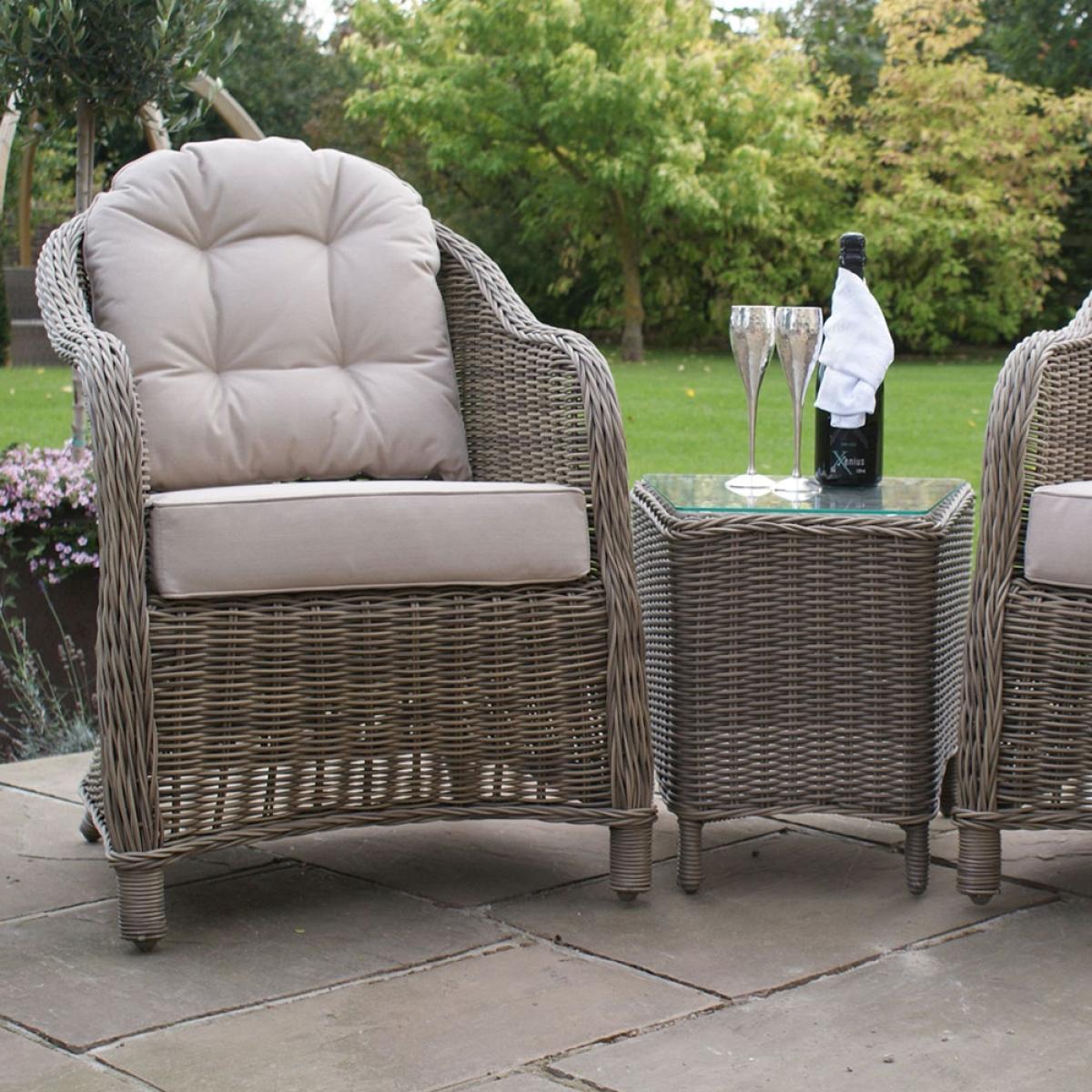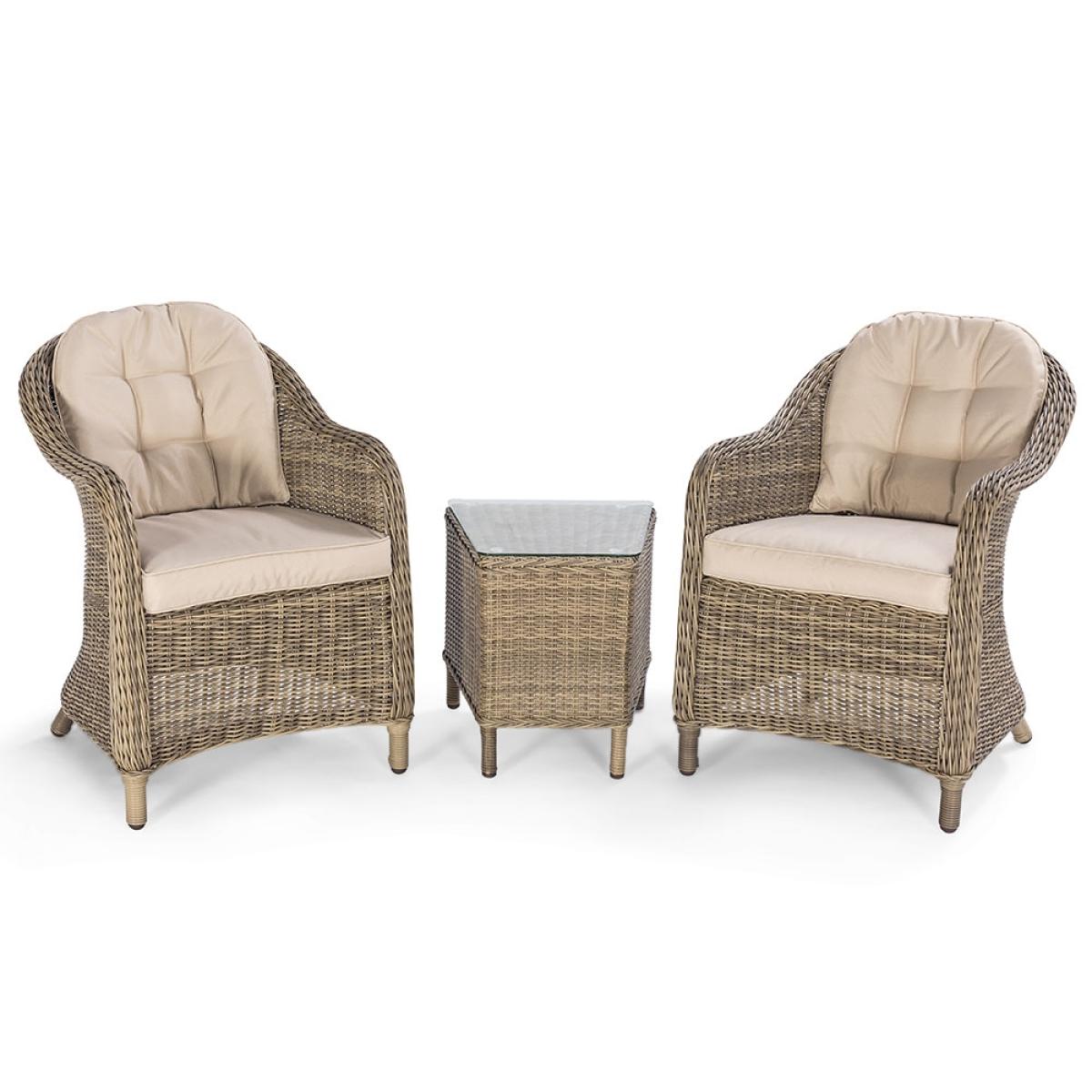 Including luxurious showerproof cushions, update those tired, old garden chairs with the. Maze Rattan Winchester 3 Piece Lounge Set. Pop drinks and nibbles down on the side table and while away the day in the matching rattan chairs. Designed with high seat backs and curved arm rests for added comfort, you might just have a new favourite spot for sunning yourself! Manufactured from the highest quality PU rattan woven onto a powder coated aluminium frame, this garden set can be left out all year round and withstand even the harshest of weather. Finished in natural and beige tones and part of the Winchester collection, relaxing outside doesn't get more stylish than this!.