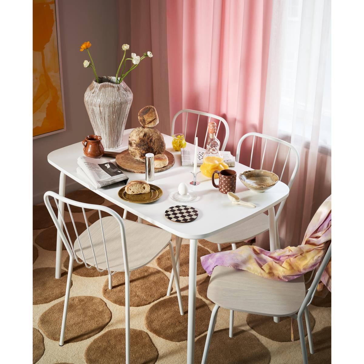 I really like the Maze same table - it’s a versatile piece that works well in both contemporary and minimalist interiors thanks to its clean lines and simple white finish. Its understated design allows it to blend seamlessly with a variety of colour schemes and furnishing styles, making it an adaptable choice for different dining spaces. Practical styling tips include pairing it with modern upholstered chairs for a chic look or mixing it with natural wood accents for warmer, inviting atmospheres. To keep the table looking fresh, consider using colourful or textured tableware and centrepieces to add visual interest and personality. Overall, it’s a functional yet stylish addition that can serve as a focal point or a subtle backdrop in a well-designed dining room.