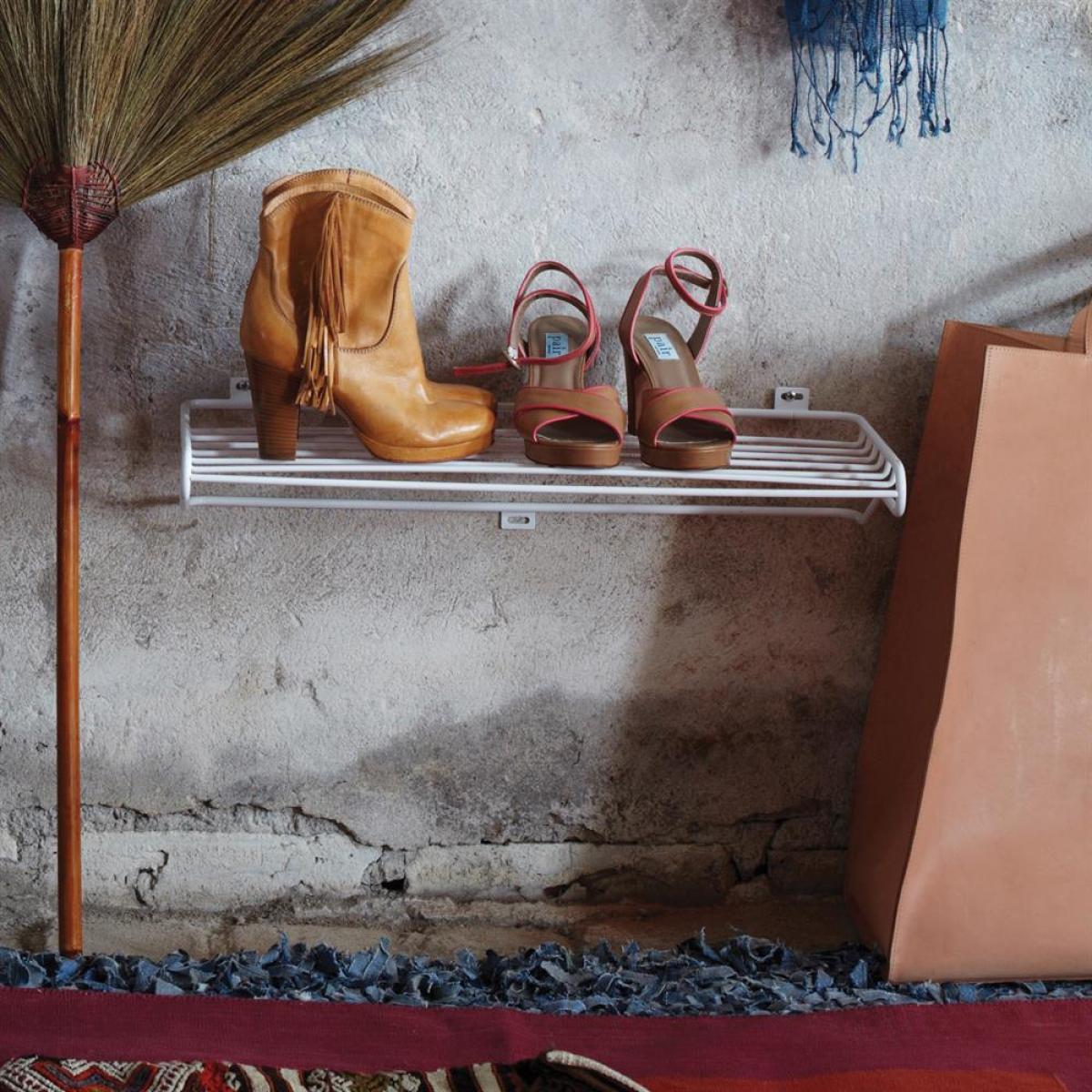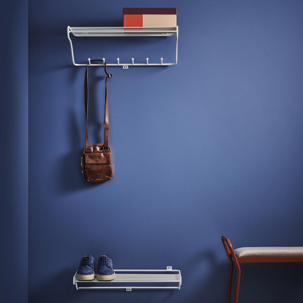 Maze shoe shelf in lacquered metal wire is perfect for small spaces. It's designed by Olof Kolte and is perfect to match with the hat shelf in the same design. You can also combine several shoe shelves on top of each other to create your own, larger shoe shelf!.