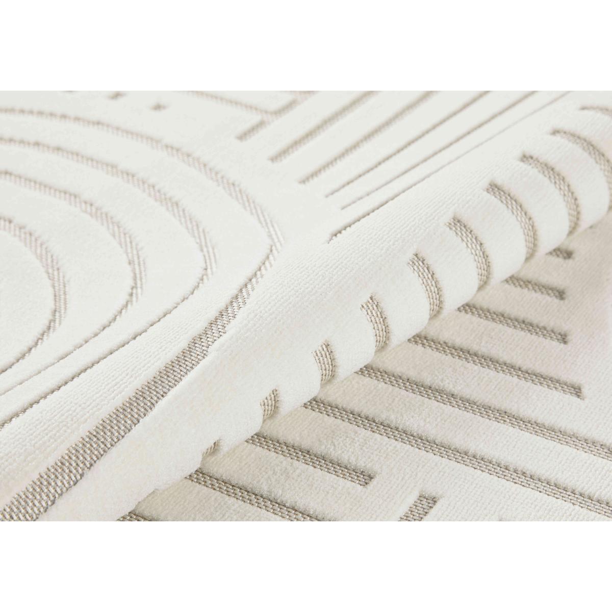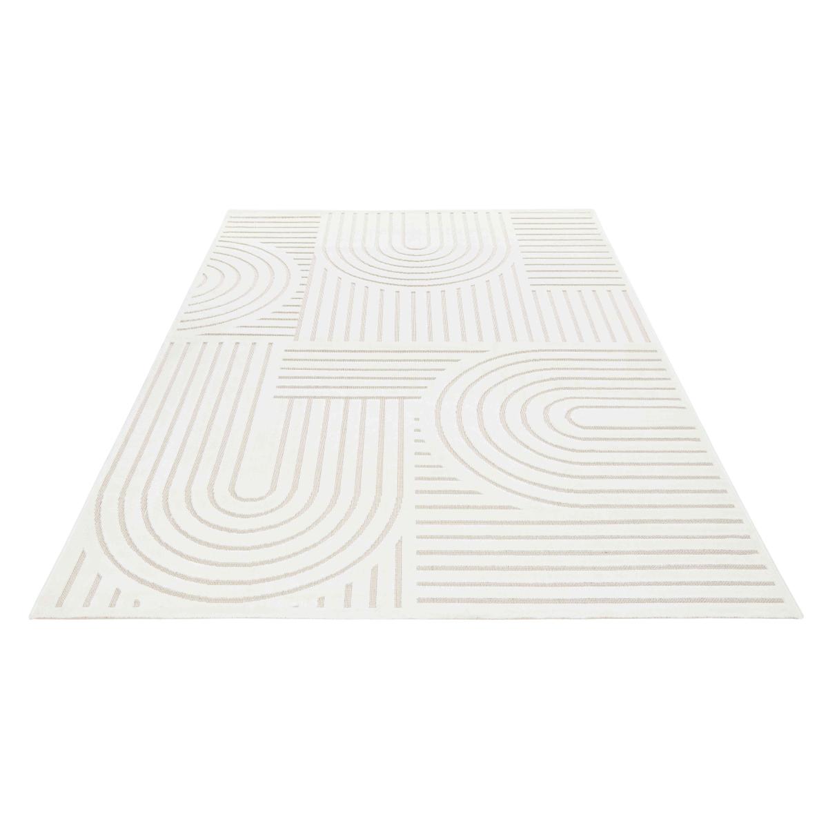 This contemporary rug fuses a classic geometric design with a modern aesthetic. In warm and versatile ivory, it makes a stylish statement in any room. Why you'll love it Elegant rug with a geometric pattern of lines, curves and arches. Bold pattern feels both modern and timeless. In versatile and sophisticated ivory. Carved pattern creates a multi-dimensional high and low pile. Machine woven for durability. Available in a choice of sizes. Understated and stylish, this rug looks perfect in any room. This rug is part of the Furniture Village home accessories collection. What you need to know 6 mm pile. 100% microfibre polyester. For indoor use only. Vacuum regularly using a suction vacuum cleaner. Blot stains; do not rub.