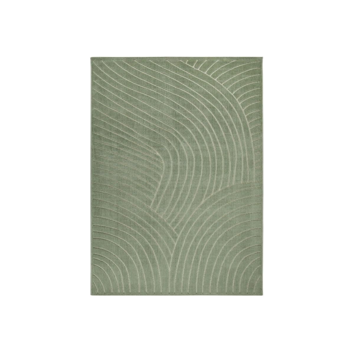 Seemingly irregular swirls meld and merge to produce a pleasing geometric effect in this striking green rug. Perfect for contemporary spaces and elegant rooms alike. Why you'll love it Chic contemporary rug showcases a confident geometric pattern. Intersecting swirls and curves create a harmonious effect. In a gorgeous yet subtle green. Carved pattern results in a multi-dimensional high and low pile. Machine woven for durability. Available in a choice of sizes. Understated and stylish, this rug looks perfect in any room. This rug is part of the Furniture Village home accessories collection. What you need to know 6 mm pile. 100% microfibre polyester. For indoor use only. Vacuum regularly using a suction vacuum cleaner. Blot stains; do not rub.