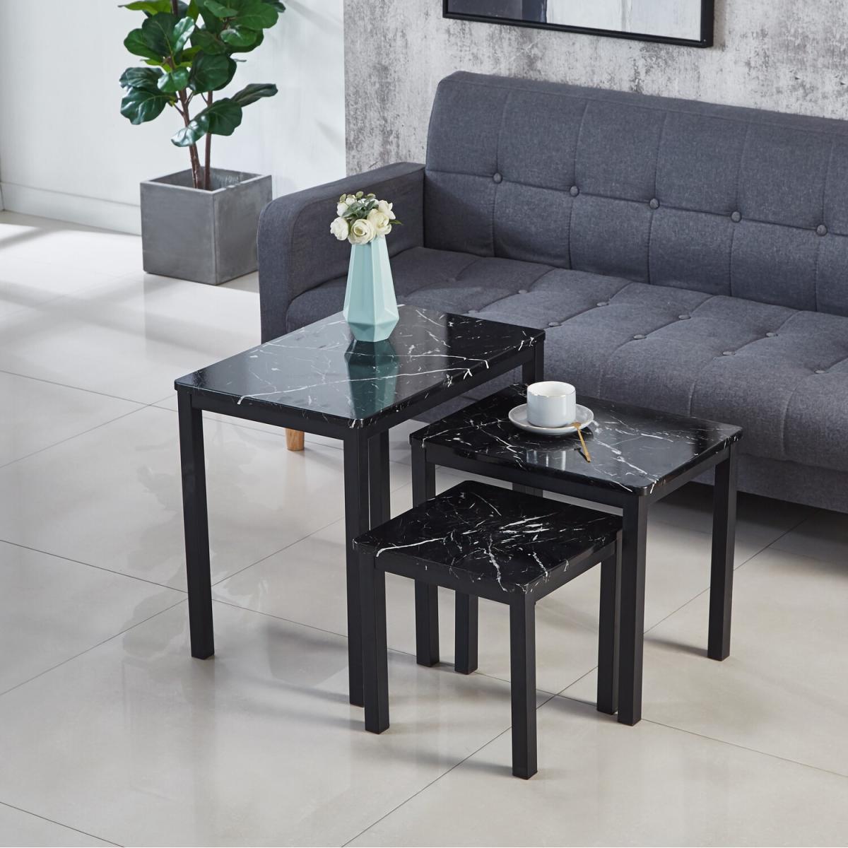 MDF Black Marble Effect Emillia Nest of 3 Tables Set - Black