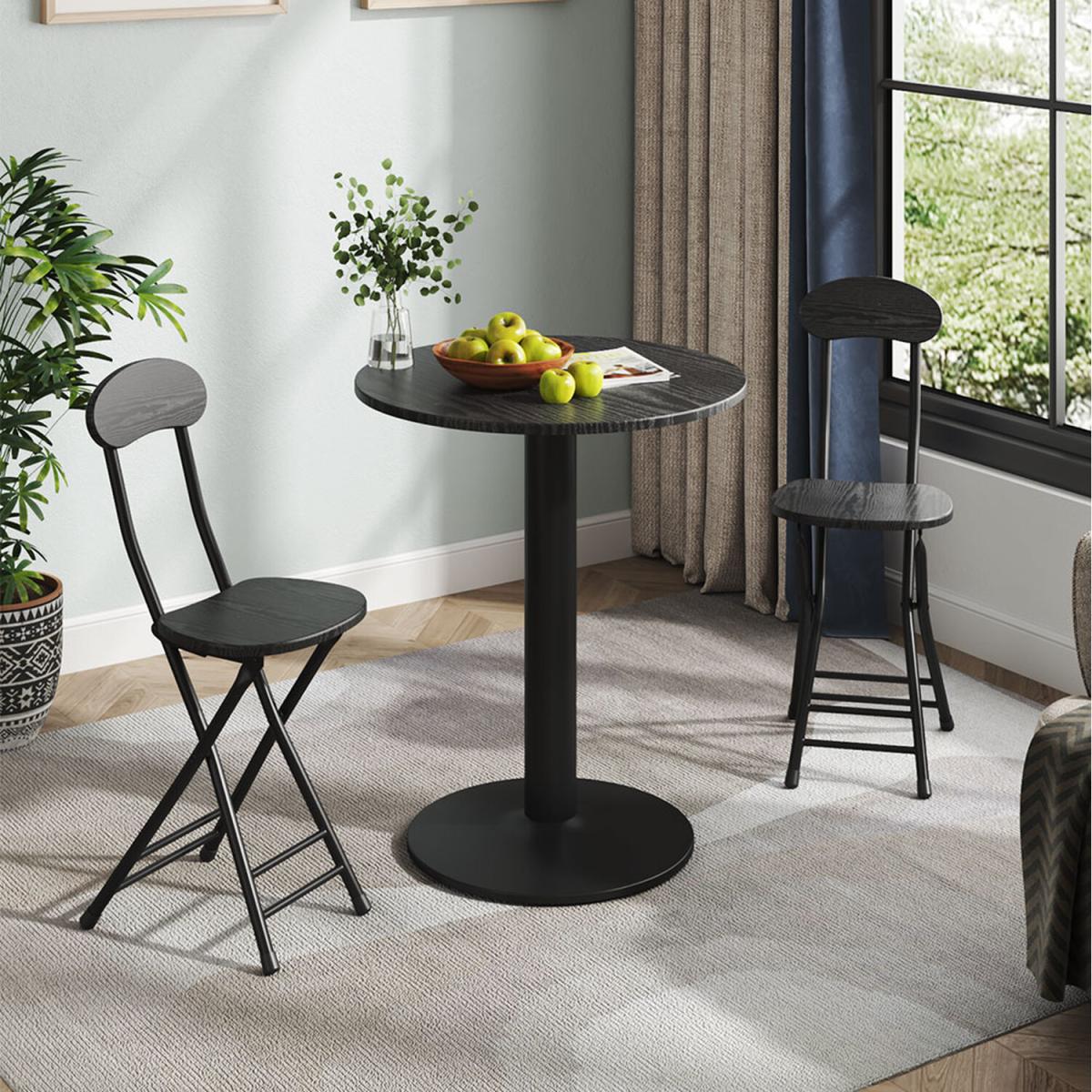 A coffee table and two chairs can create an ideal spot for afternoon tea, reading, or chatting with friends. This high-quality coffee table and folding chair set is perfect for building a relaxing space. The set includes an easy-to-assemble coffee table and two elegant folding chairs, designed in a matching theme with cohesive colors and a sleek, simple appearance, making it both stylish and elegant. Both the coffee table and chairs are crafted from medium-density fiberboard (MDF), providing a smooth surface that's easy to clean. The sturdy iron frames offer stable support and are coated in the similar color as the MDF, enhancing the aesthetic appeal while also protecting against rust and corrosion. This set is versatile enough to complement a variety of spaces, whether it's a cafe, a small restaurant, or a cozy corner for afternoon tea.