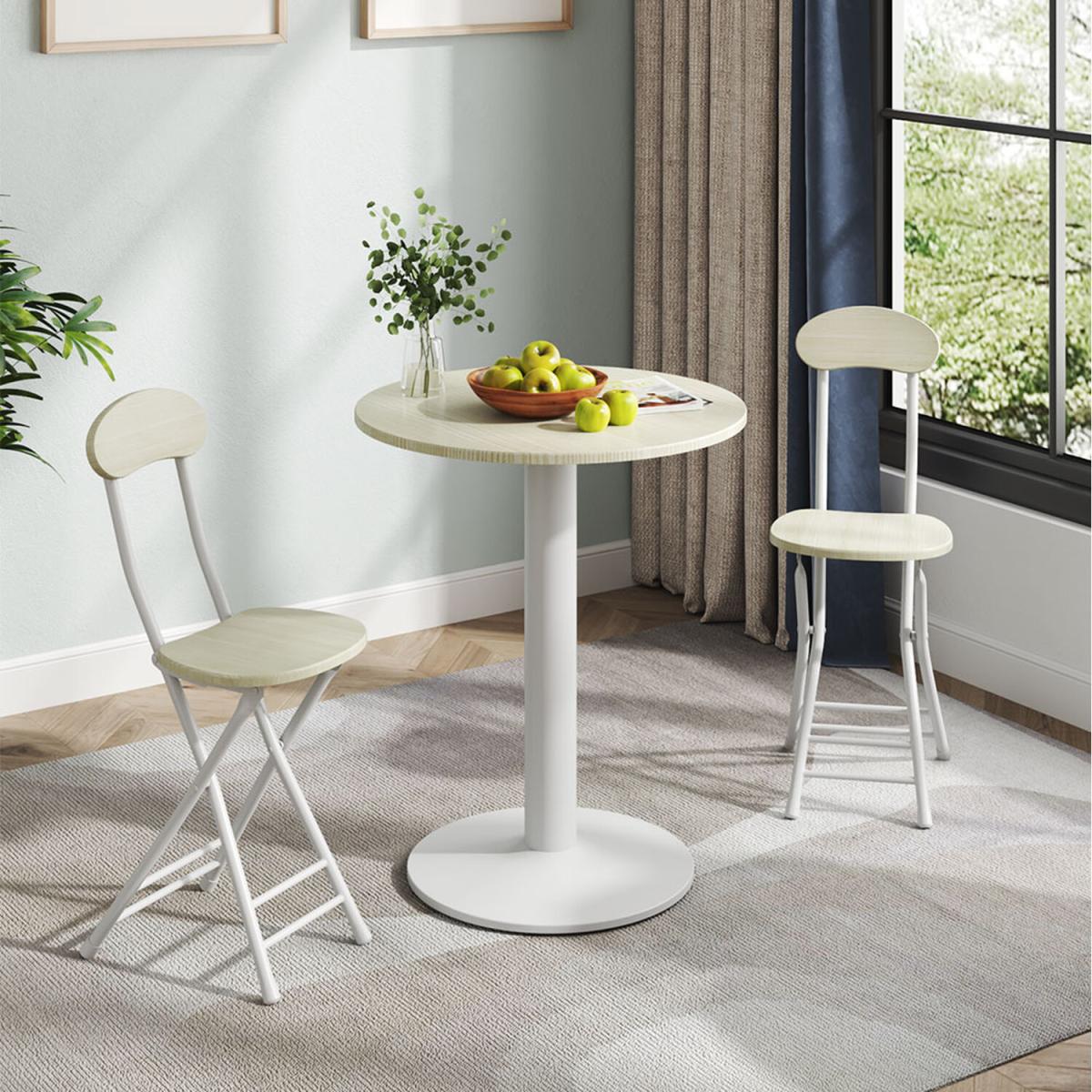 A coffee table and two chairs can create an ideal spot for afternoon tea, reading, or chatting with friends. This high-quality coffee table and folding chair set is perfect for building a relaxing space. The set includes an easy-to-assemble coffee table and two elegant folding chairs, designed in a matching theme with cohesive colors and a sleek, simple appearance, making it both stylish and elegant. Both the coffee table and chairs are crafted from medium-density fiberboard (MDF), providing a smooth surface that's easy to clean. The sturdy iron frames offer stable support and are coated in the similar color as the MDF, enhancing the aesthetic appeal while also protecting against rust and corrosion. This set is versatile enough to complement a variety of spaces, whether it's a cafe, a small restaurant, or a cozy corner for afternoon tea.