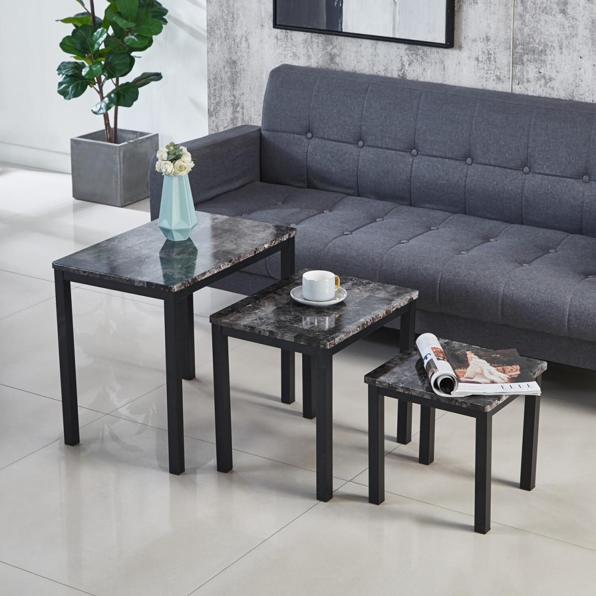 MDF Grey Marble Effect Emilia Nest of 3 Table Set - Grey