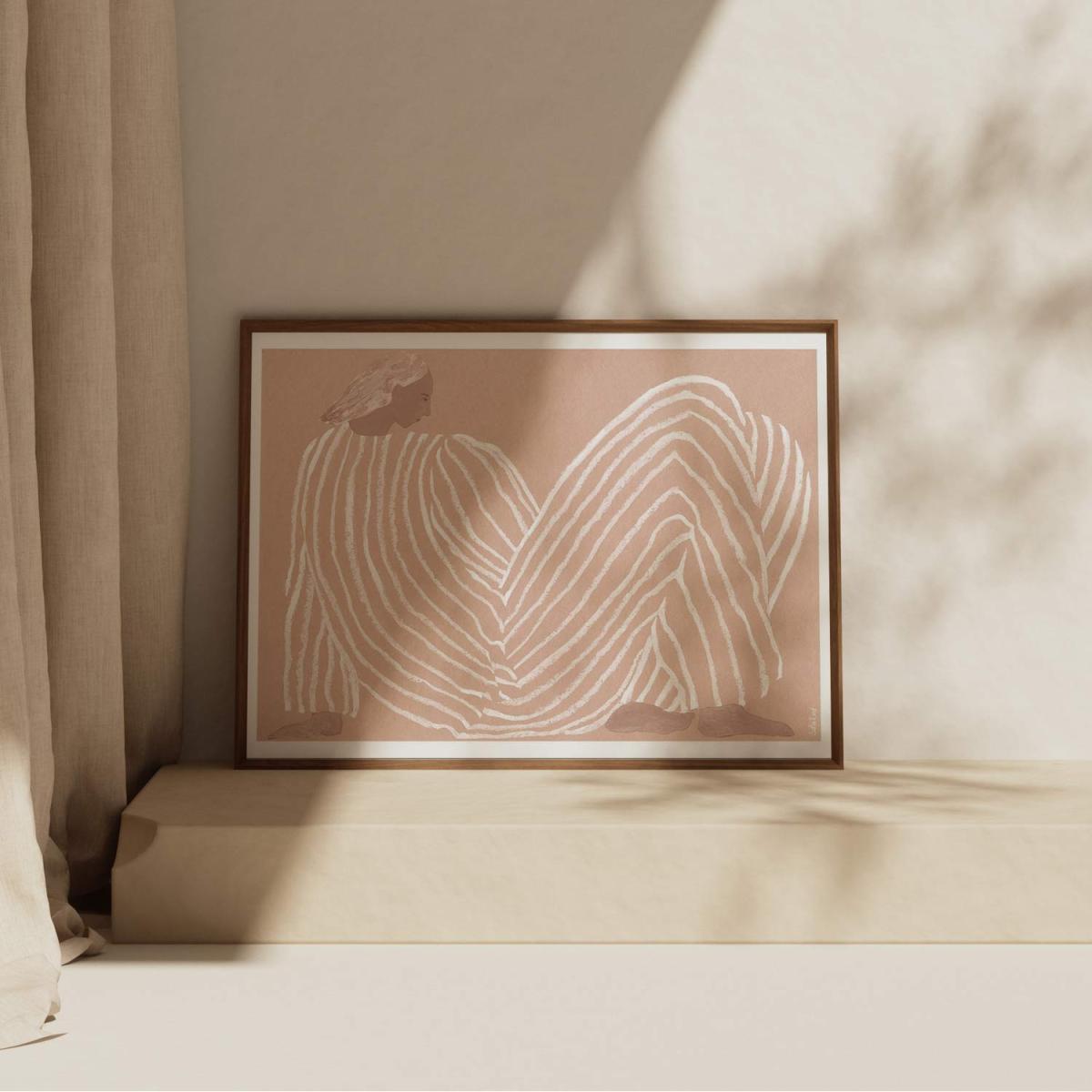 Me by Sophia Lind helps make up a collection of fine art prints depicting femininity and is imbued with a use of pattern and dusk, originally drawn with charcoal. This print is in collaboration with. The Paper Collective.