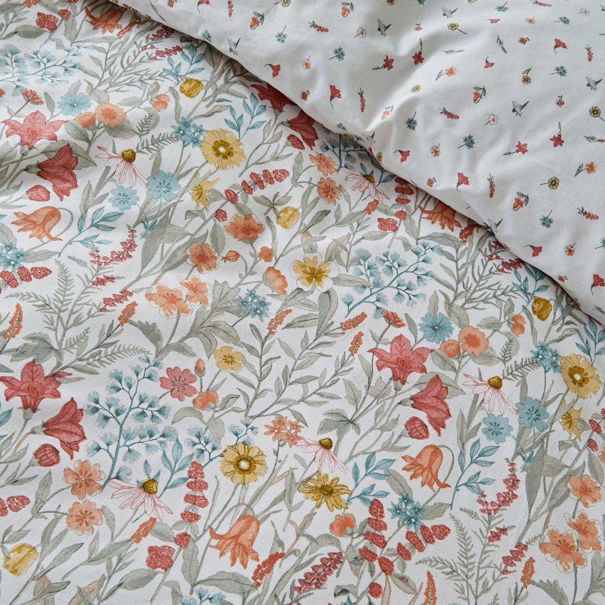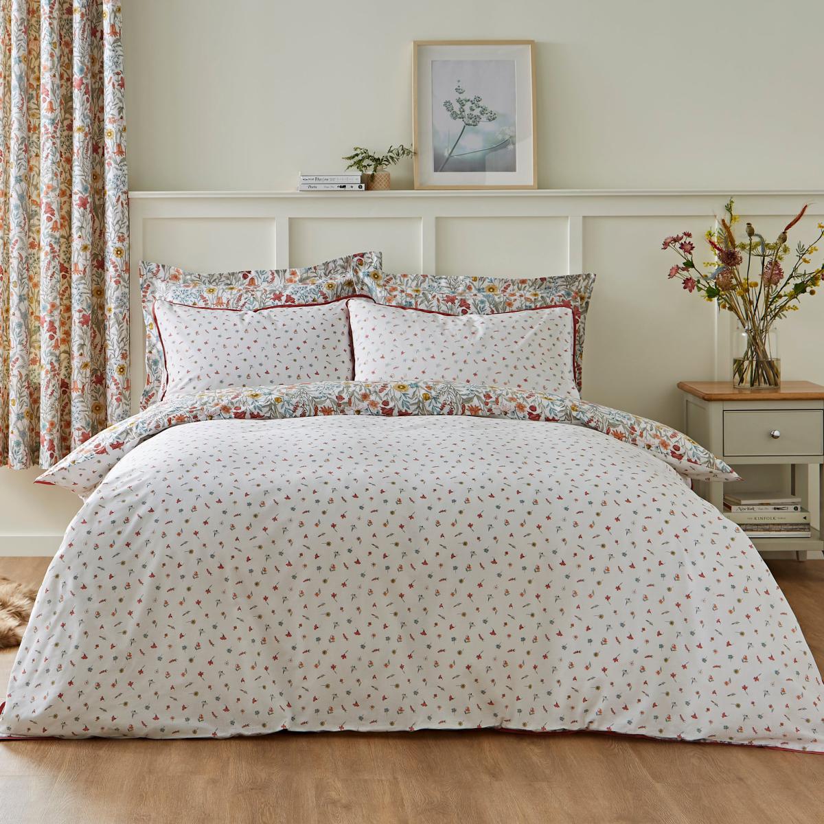 Meadow Ditsy Floral Red 100% Cotton Reversible Duvet Cover and Pillowcase Set Red and White