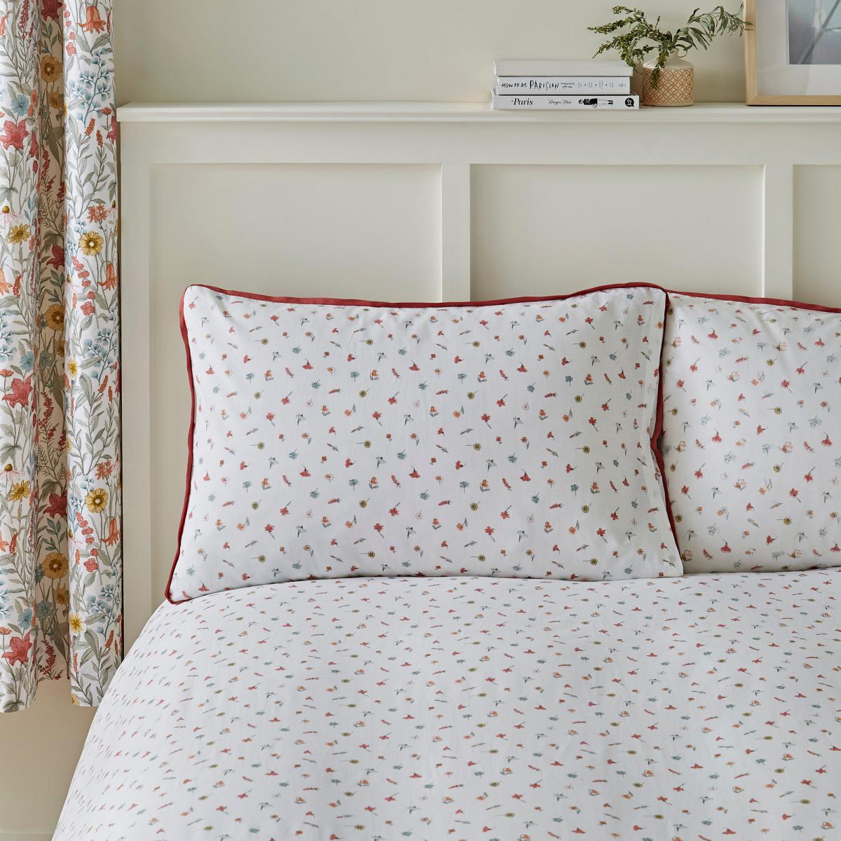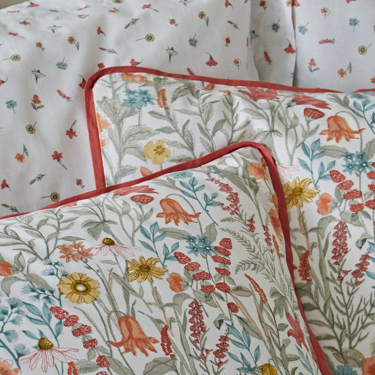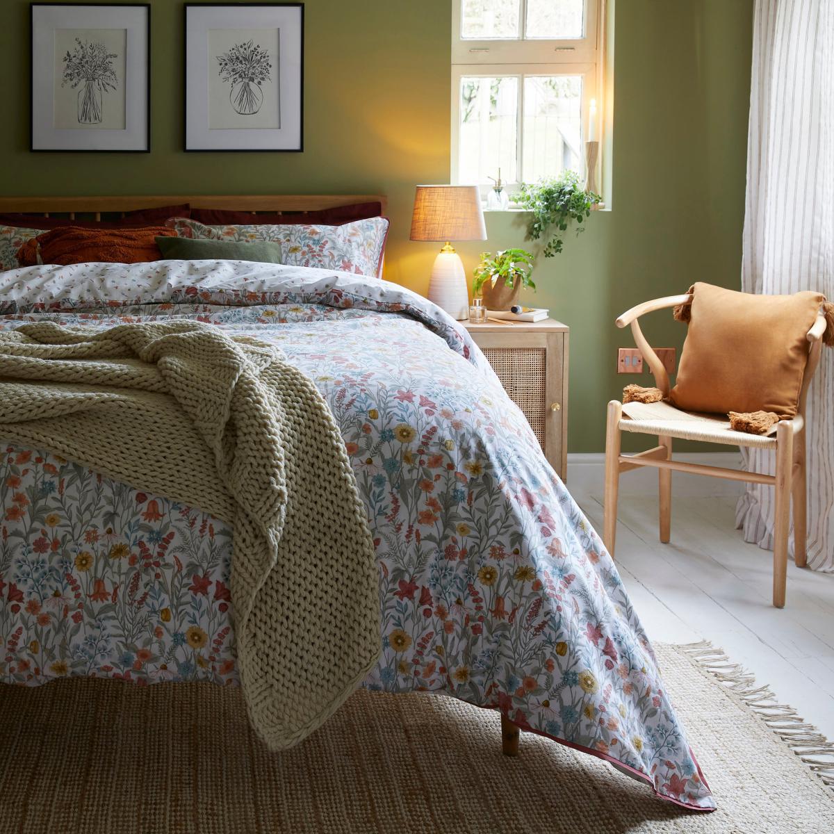 The Meadow Ditsy floral duvet set is a versatile choice that works particularly well in relaxed, country-inspired schemes or cottage-style interiors. I love its cheerful, classic red and white palette, which can brighten up a neutrally decorated bedroom or add a lively touch to a more traditional space. The reversible design is practical, allowing for quick updates without extra effort. For styling, pair it with crisp white or soft neutral linens and add textured cushions or throws in complementary colours to create a cosy yet fresh look. This set is also an excellent choice for those seeking a practical, durable fabric as it’s made from 100% cotton, ensuring comfort and easy maintenance.