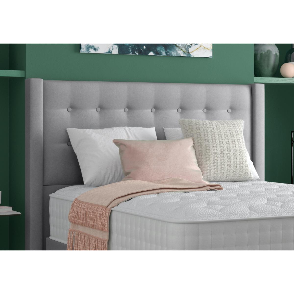 Hand upholstered in a choice of luxurious fabrics, the Meadow headboard from Silentnight is the perfect finishing touch for your Silentnight divan bed, or any standard sized divan. Why you'll love it. Chic, buttoned headboard from Silentnight. Two rows of buttoning. Upholstered side frame. Floor standing design, for luxury from top to floor. Generously cushioned, for those lazy mornings in bed. Plush velvets and contemporary woven fabrics. In a wide choice of colours. Handcrafted and hand upholstered here in the UK. High-end style and quality, for a great value price. What you need to know. Sizes: Double, king, super king. Suits all Silentnight bed bases and most other bed bases. Vispring’s full choice of fabrics include 100% wool, faux suedes, velvet mixes, satins, canvas and linen weaves. Easily attaches using the fittings provided. To keep your upholstered furniture in prime condition please vacuum regularly and deal promptly with any spills or marks. Oil or grease based stains are best dealt with by a professional cleaning company. For care and cleaning advice, please read our upholstery care guide.