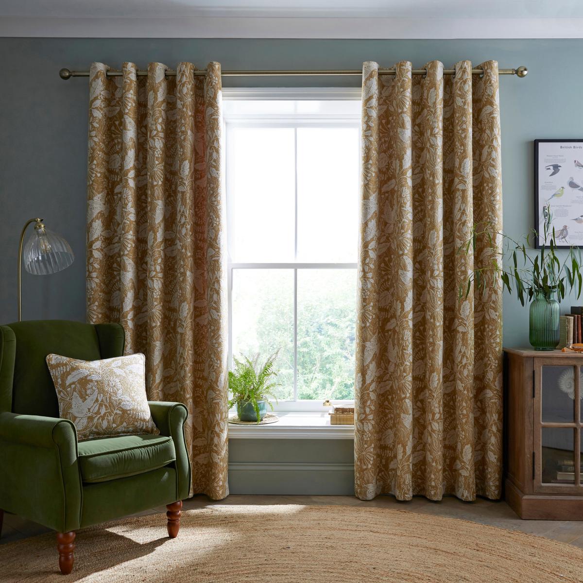 **In collaboration with the Natural History Museum** * Soft honey colour * Intricate Meadow Starling bird design * Colour matched lining * Easy to hang eyelet header * Multiple sizes available * Matching cushion available Freshen up your room with a burst of nature with the Meadow Starling Curtains. An intricate bird design sits on a soft honey coloured background for a restful and calming aesthetic. These curtains have an eyelet header for easy hanging and are fully lined with a colour matched lining. Made from durable polyester, these curtains will be a stylish addition to your home and are available in multiple sizes for the best fit. A matching cushion is available to complete the look. Please note: these curtains are sold as a pair. Due to the nature of this design, multiple purchases of this product may not pattern match.**Natural History Museum x Dunelm**From our familiar garden friends to more exotic species from tropical lands, birds are all around us. They live on every continent, in every type of habitat and can be as different as the hummingbird and the penguin. This collection pays homage to some of the wonderful birds that reside in the UK, some well-known species that we might overlook in our daily lives, and yet they are incredible in their own right. From the house sparrow and grey partridge to the fieldfare and turtle dove, many of these species are under threat or in decline so it is crucial that we act to protect their habitats. © The Trustees of the Natural History Museum, London 2025. All Rights Reserved.