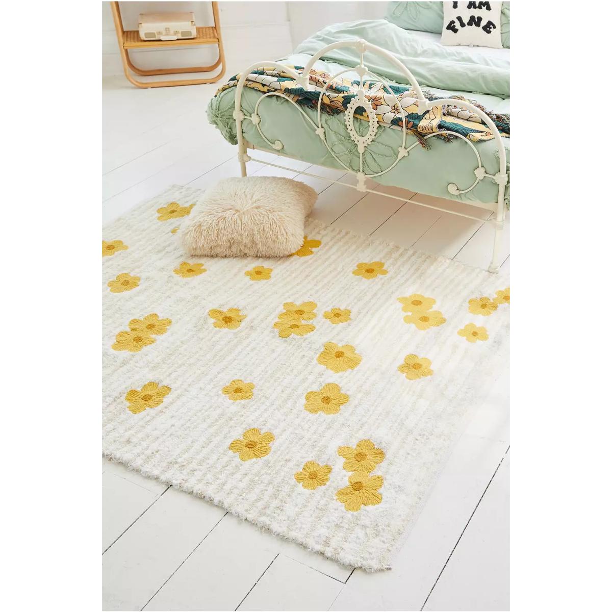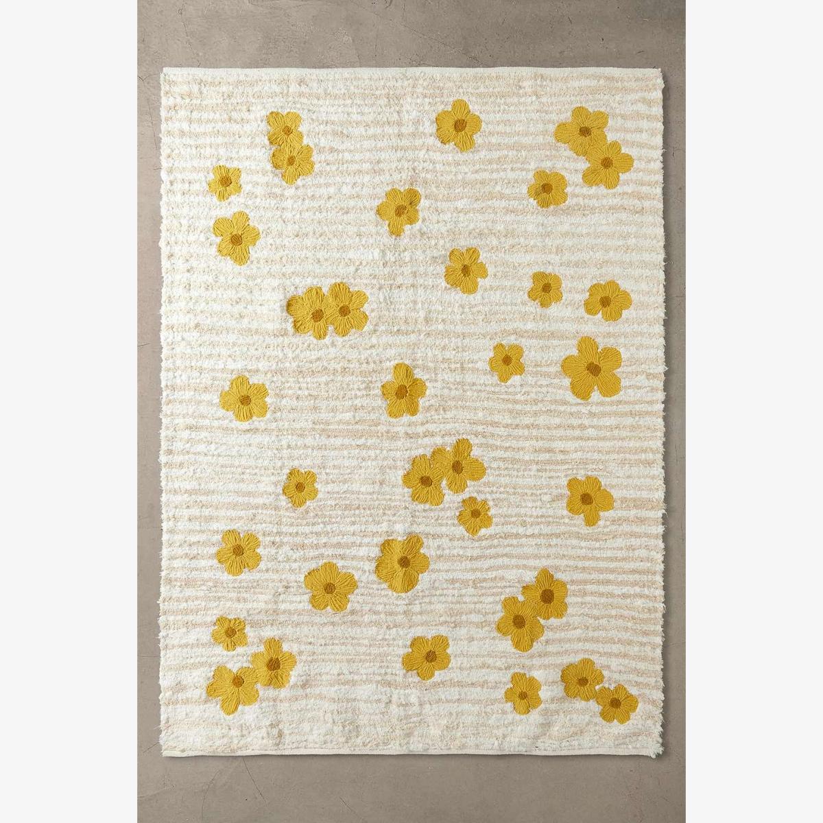 Create an inside-outside space with this meadow-inspired rug. The grassy-feature rug features a tufted construction with a texture finish and woven daisies dotted throughout. **Content + Care** \- 91% Coton, 7% Polyester, 2% Other fibres \- Spot clean **Size** \- 152.4cm x 213.3cm (5ft x 7ft)